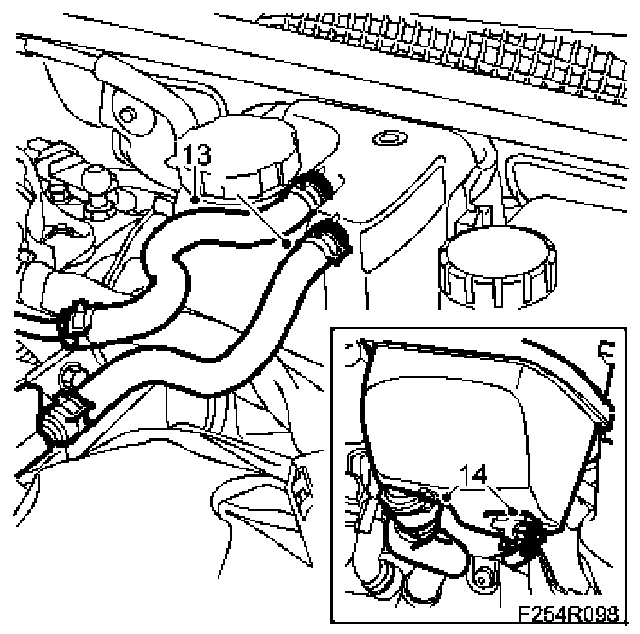 6. Place a suitable receptacle under the radiator. Connect a hose to the radiator and drain the coolant. Close the cock and refit the spoiler shield.