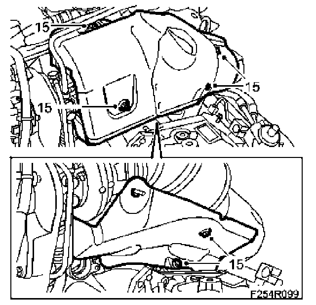16. Fit the heat shields to the turbocharger and catalytic converter.