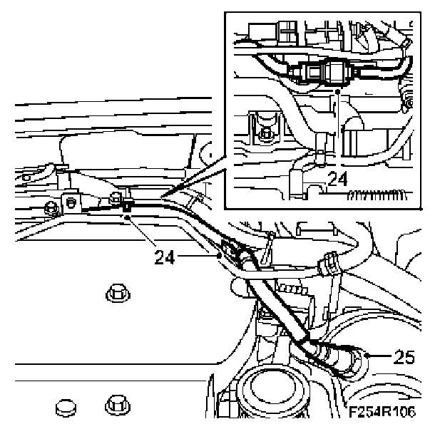 24. Unplug the connector of the upper oxygen sensor and move up the cable.