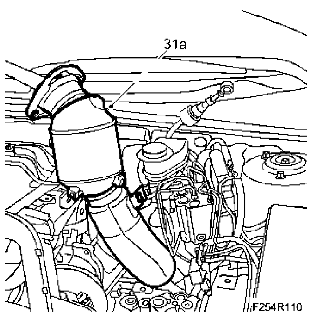 31. Carefully coax up the catalytic converter as illustrated.