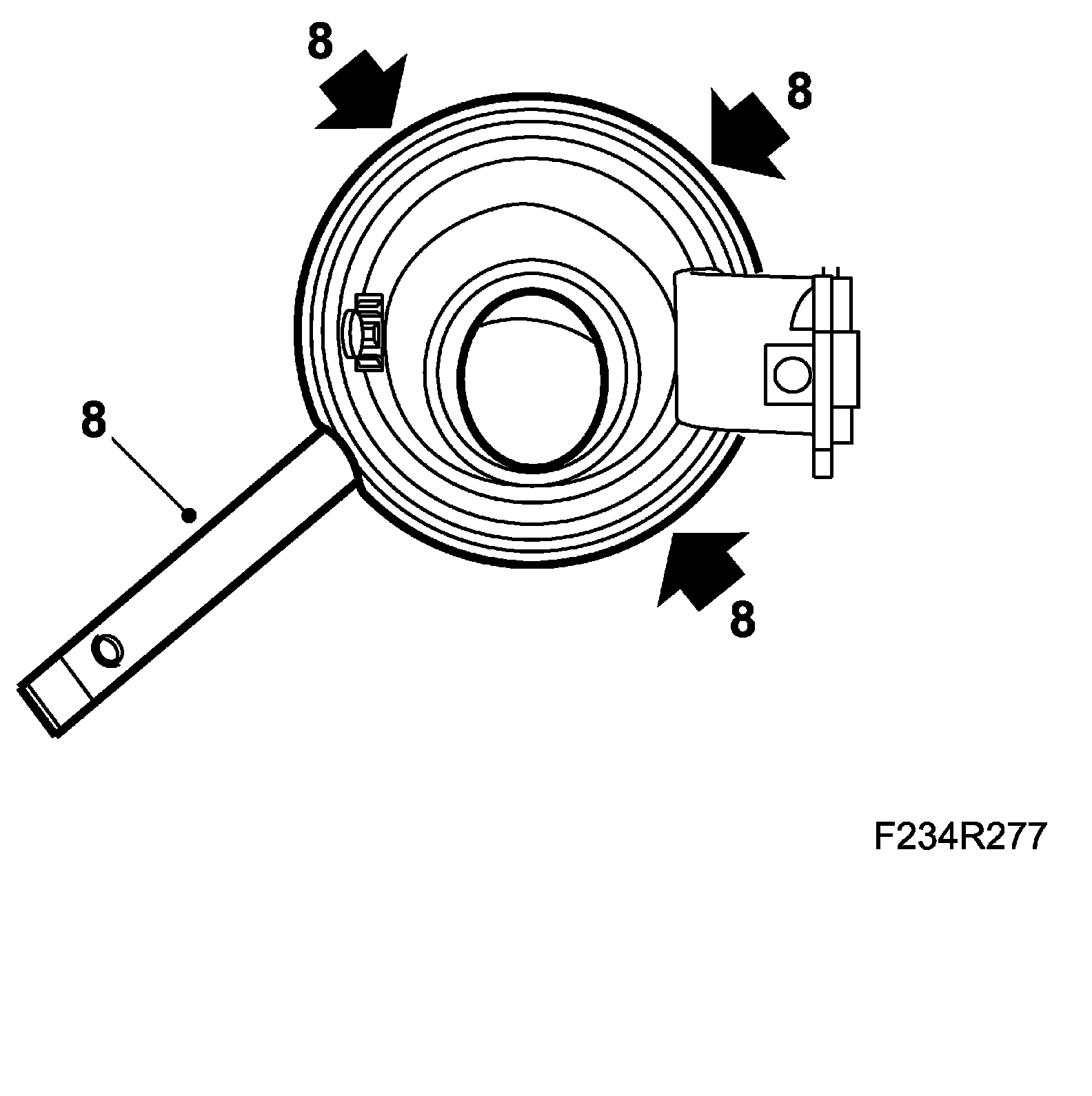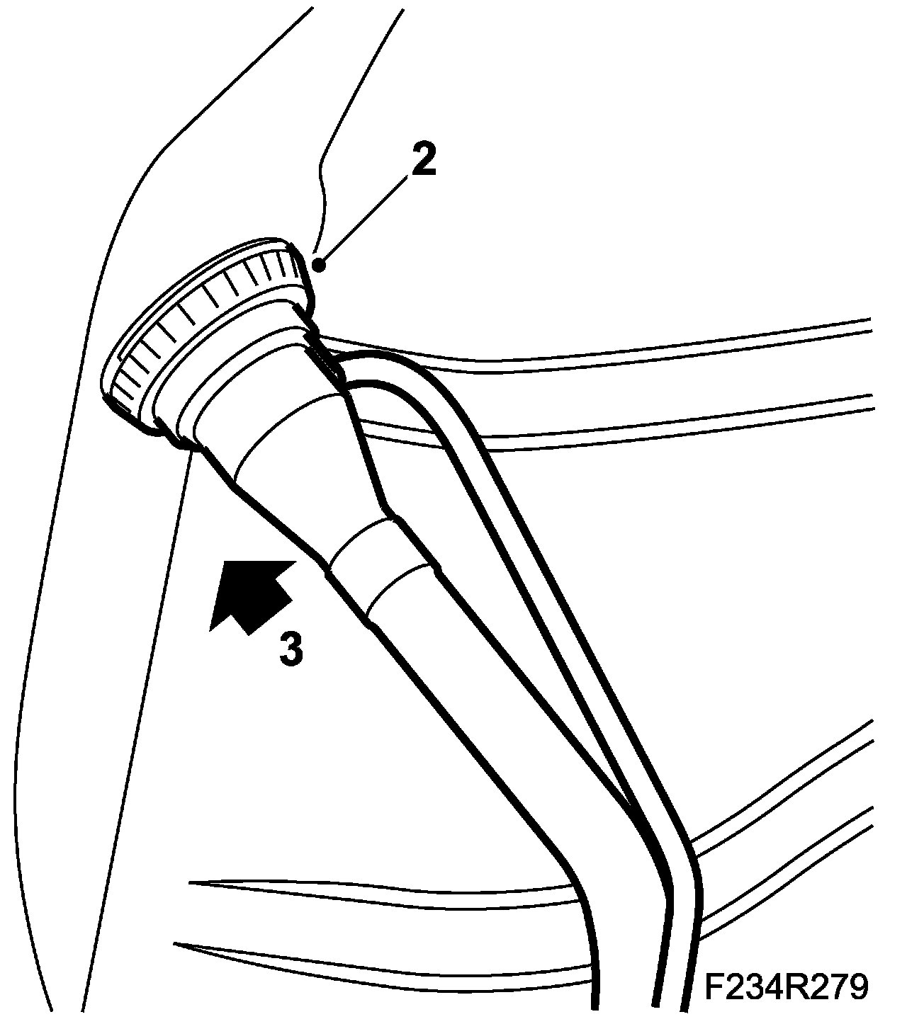 8. Remove the filler cap sleeve using 82 93 474 Removal tool. Start removing from the rear edge of the filler cap sleeve so that the locking clips disengage.