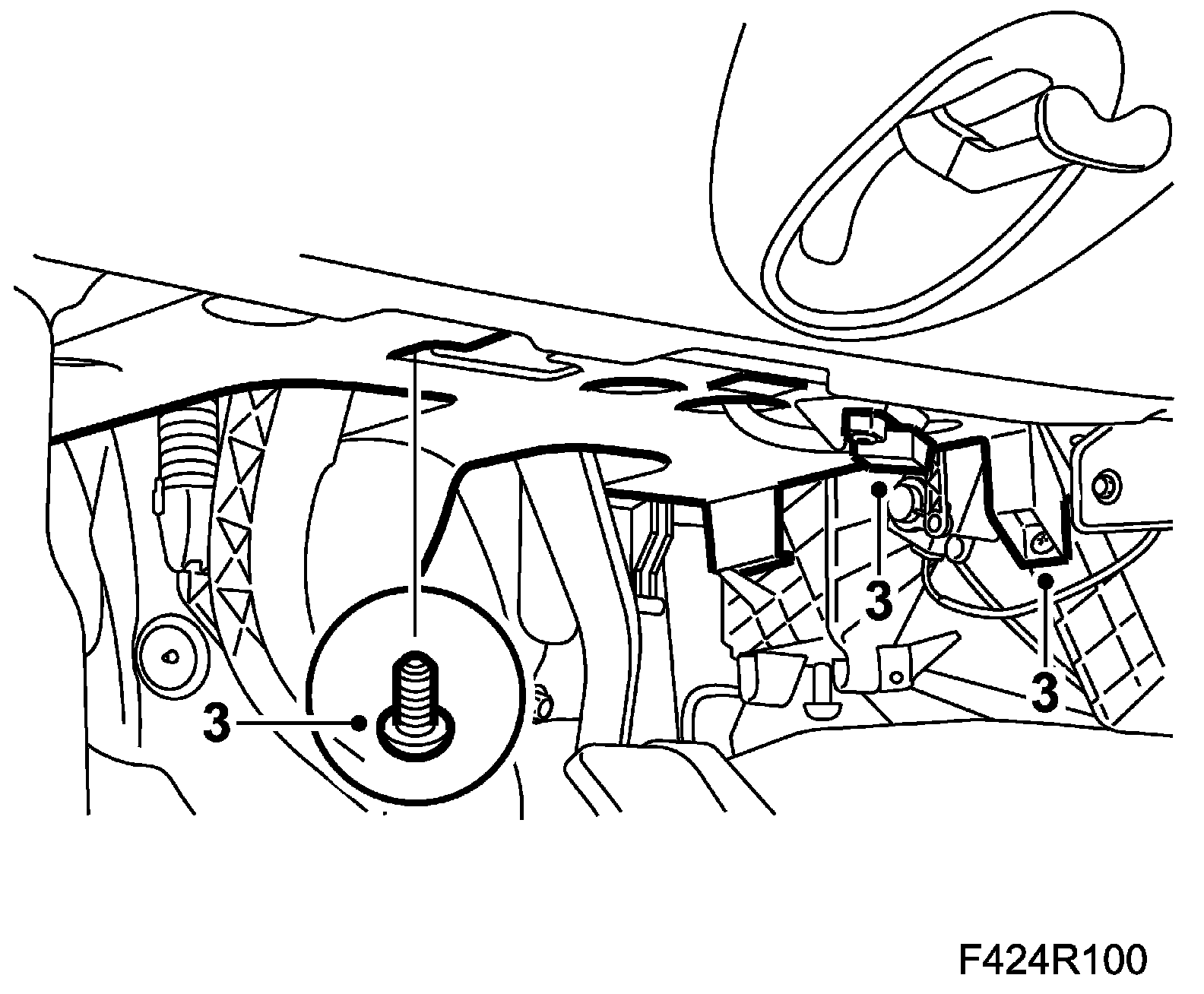 3. Fit the 2 sound insulating baffle screws to the climate housing and instrument panel.