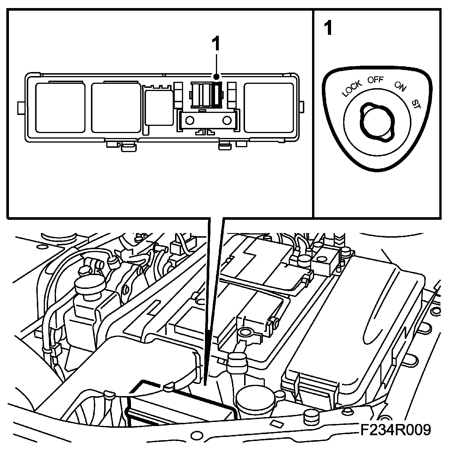 1. Petrol engine: Reduce the fuel pressure by removing fuse 2 while the engine is running (fuse 2 is located in the main fuse box in front of the battery). Once the engine has stopped, turn the ignition key to LOCK and refit the fuse.