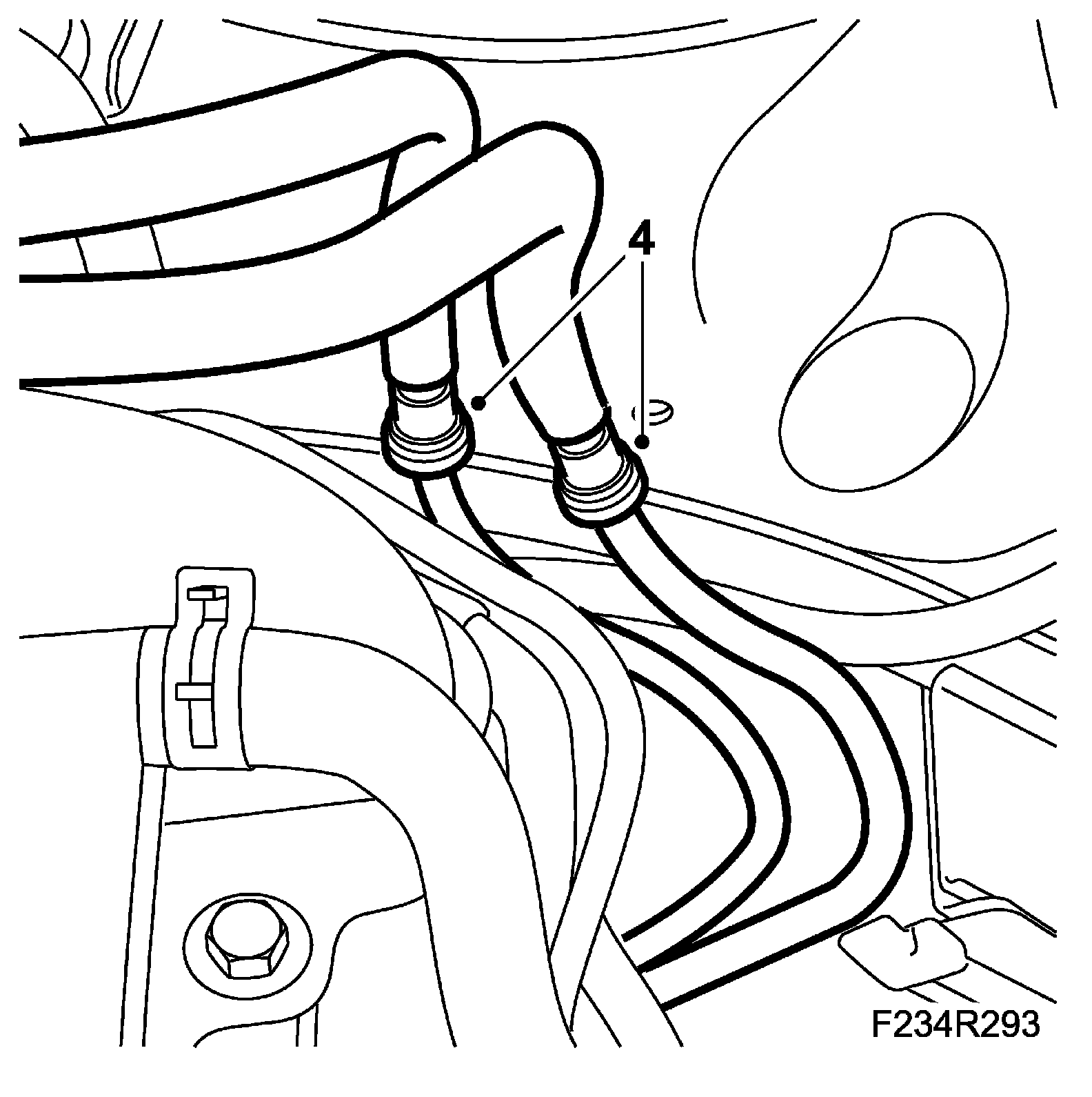4. Separate the fuel lines in the engine bay, use 83 95 261 Fuel line tool and plug the lines. Use 82 92 948 Plugs, AC-system kit. (B284 only has delivery line)