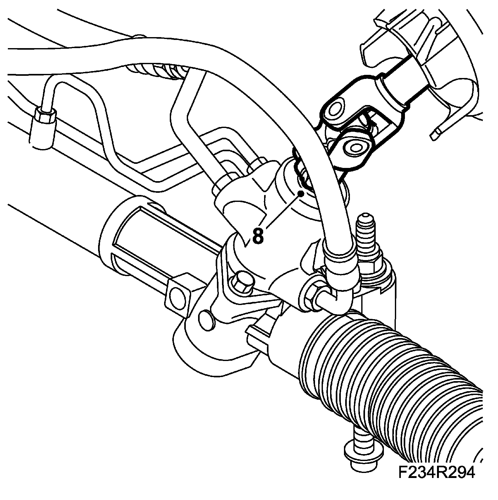 10. B284 RHD: Position a receptacle under the car and remove the power steering lines from the steering gear.