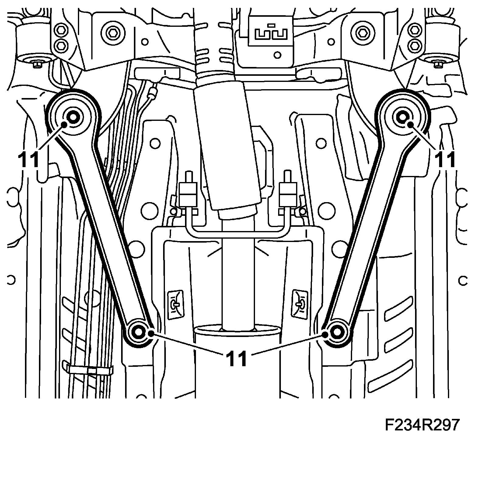 Tightening torque, stay: 90 Nm + 45 degrees (67 ft. lbs. + 45 degrees)