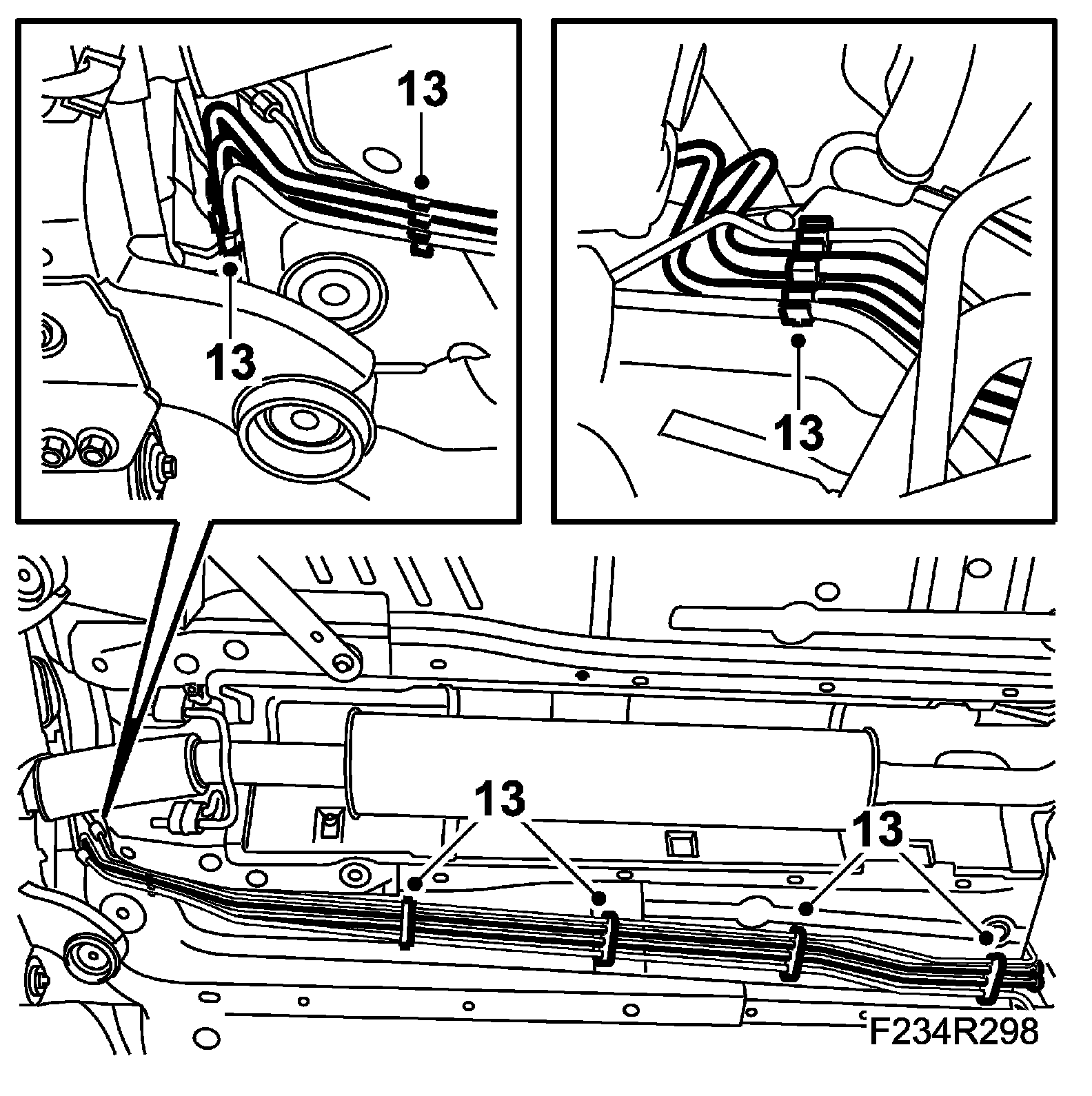 13. Undo the fuel lines from their holders and the brake pipes from the front holders.