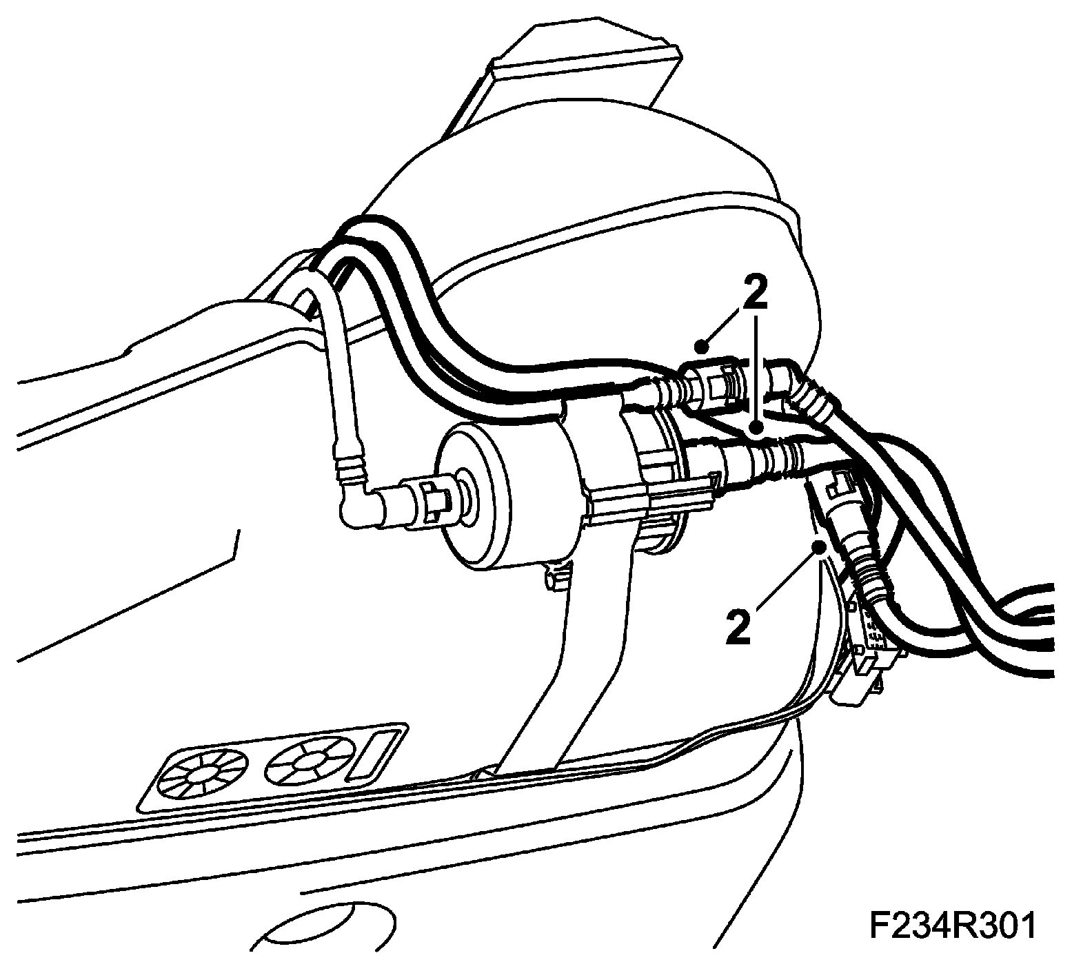1. Fit the fuel lines in their holders.