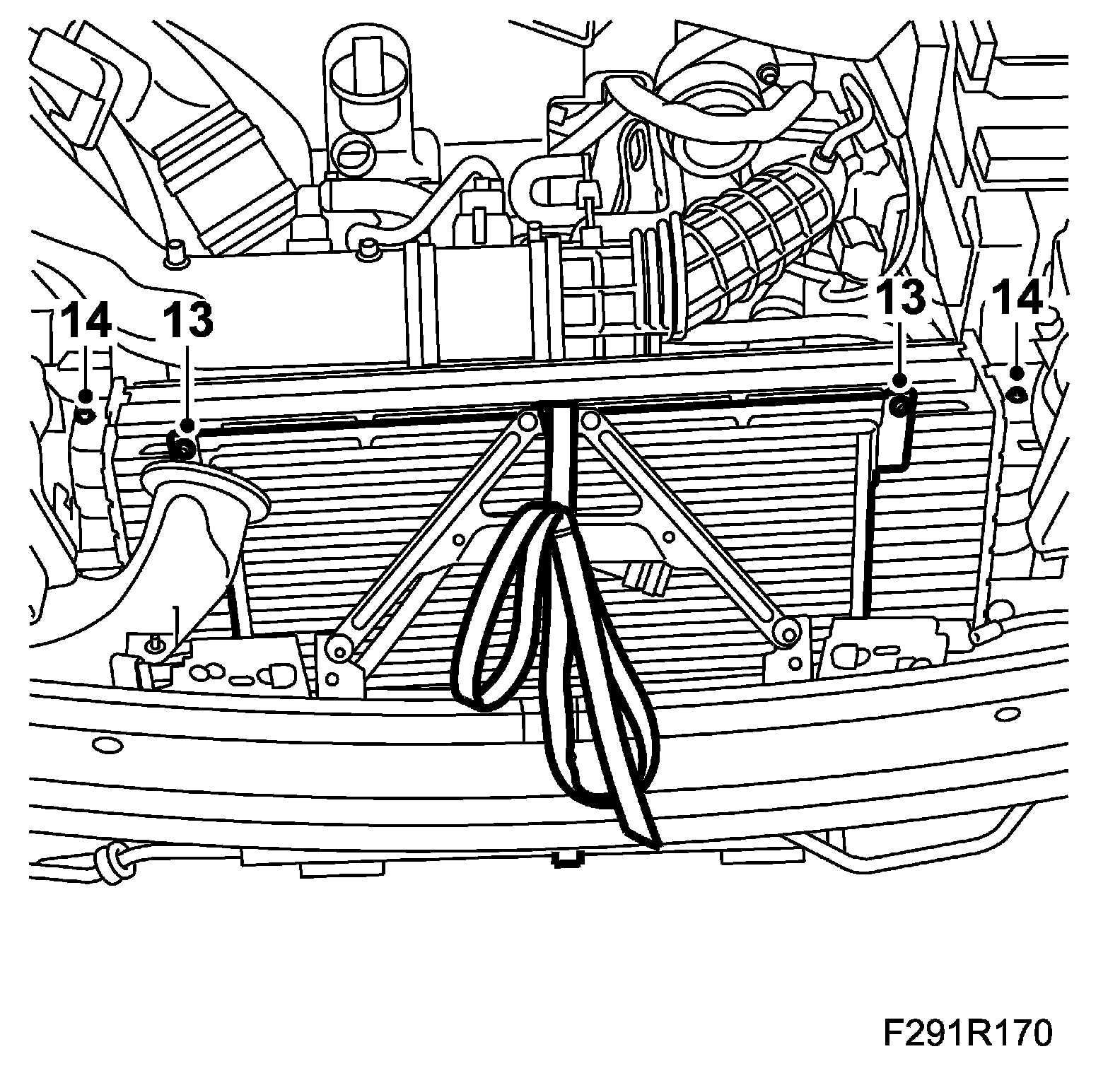 13. Detach the condenser from the charge air cooler and suspend it with a 83 95 212 Strap.