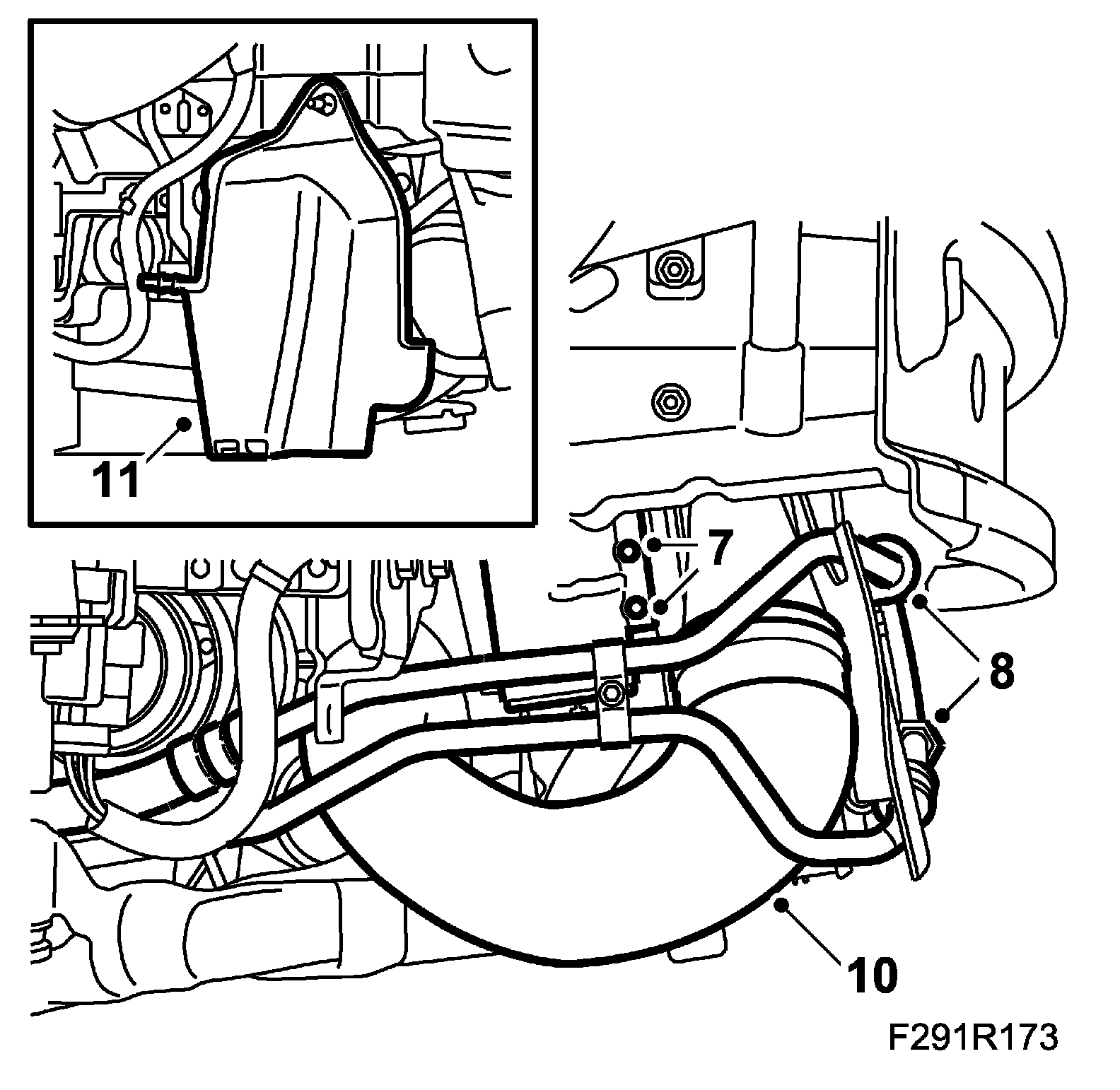 8. Attach the power steering pipe to the charge air cooler.