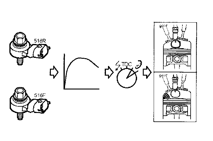 The engine is equipped with two piezoelectric knock sensors - one per cylinder bank. The sensors register engine working noise. Knocking generates a characteristic noise, the frequency of which depends on the factors such as the shape of the combustion chamber. By filtering the sound from the sensors through a bandpass filter that only allows sound within the frequency characteristic of knocking to pass through, some of the engine's other noises can be filtered out.