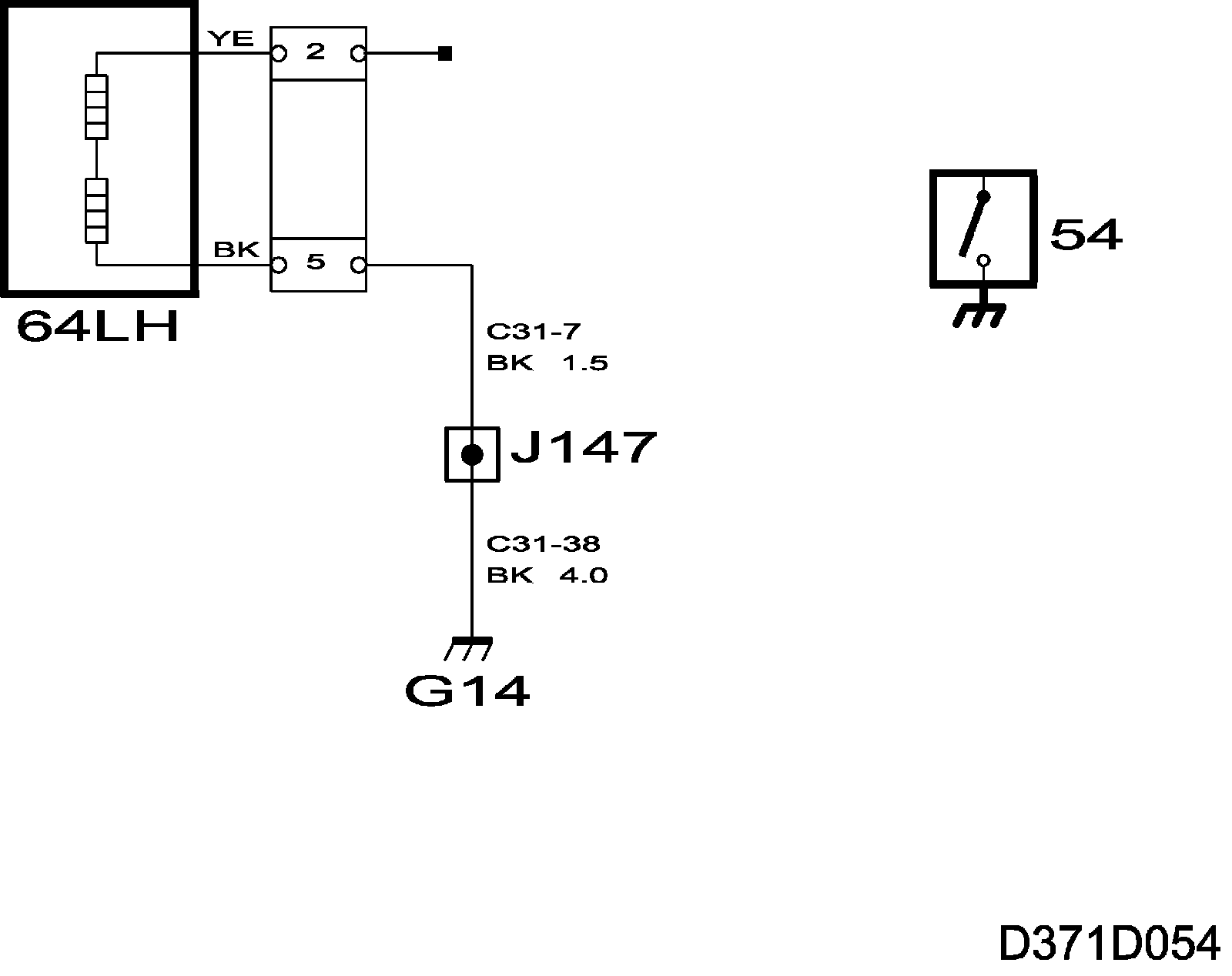 Certain components are grounded directly to the body, e.g. the door switches. These ground connections are indicated by a thicker line than normal connections to the grounding point.