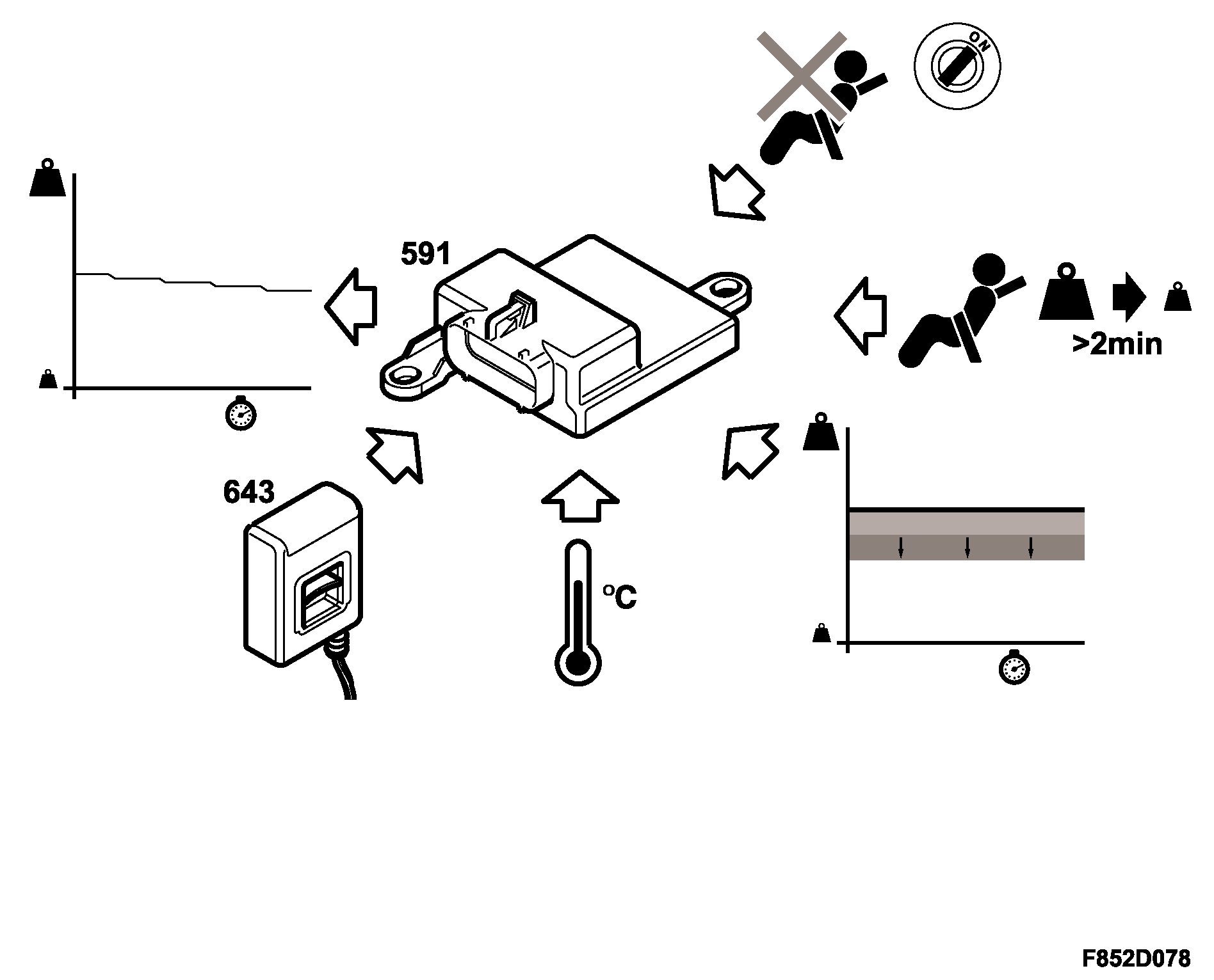 Example: if the tension is high, it will affect the weight in the passenger seat. The measured weight calculated in the PPS control module must be reduced and filtered.