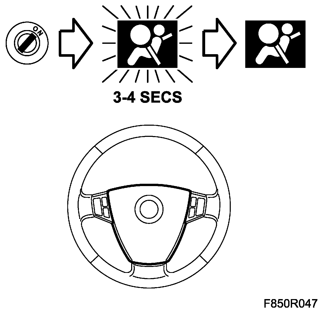 5. Turn on the ignition. Check that the airbag lamp lights for a duration of 3-4 seconds and then extinguishes.