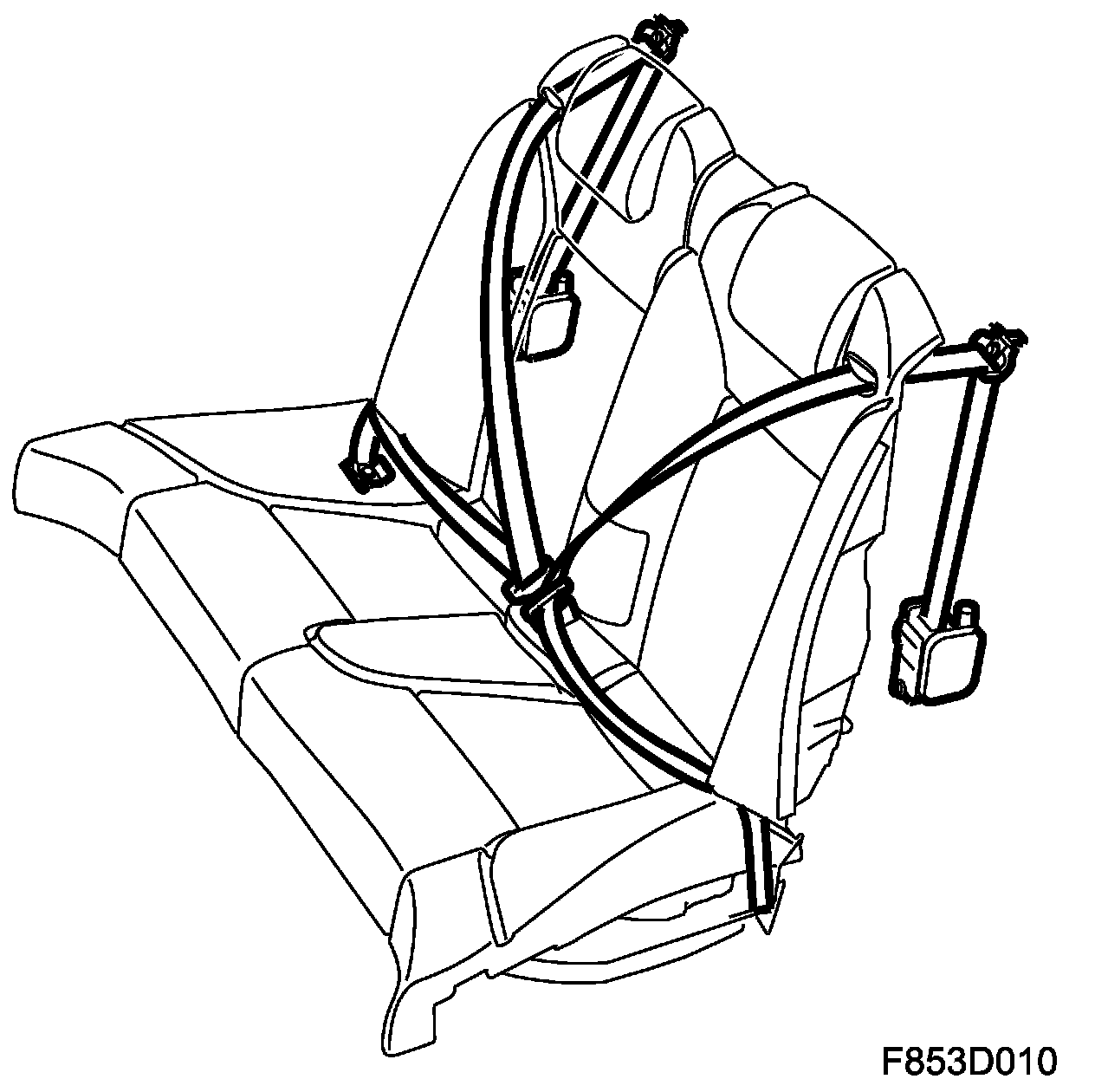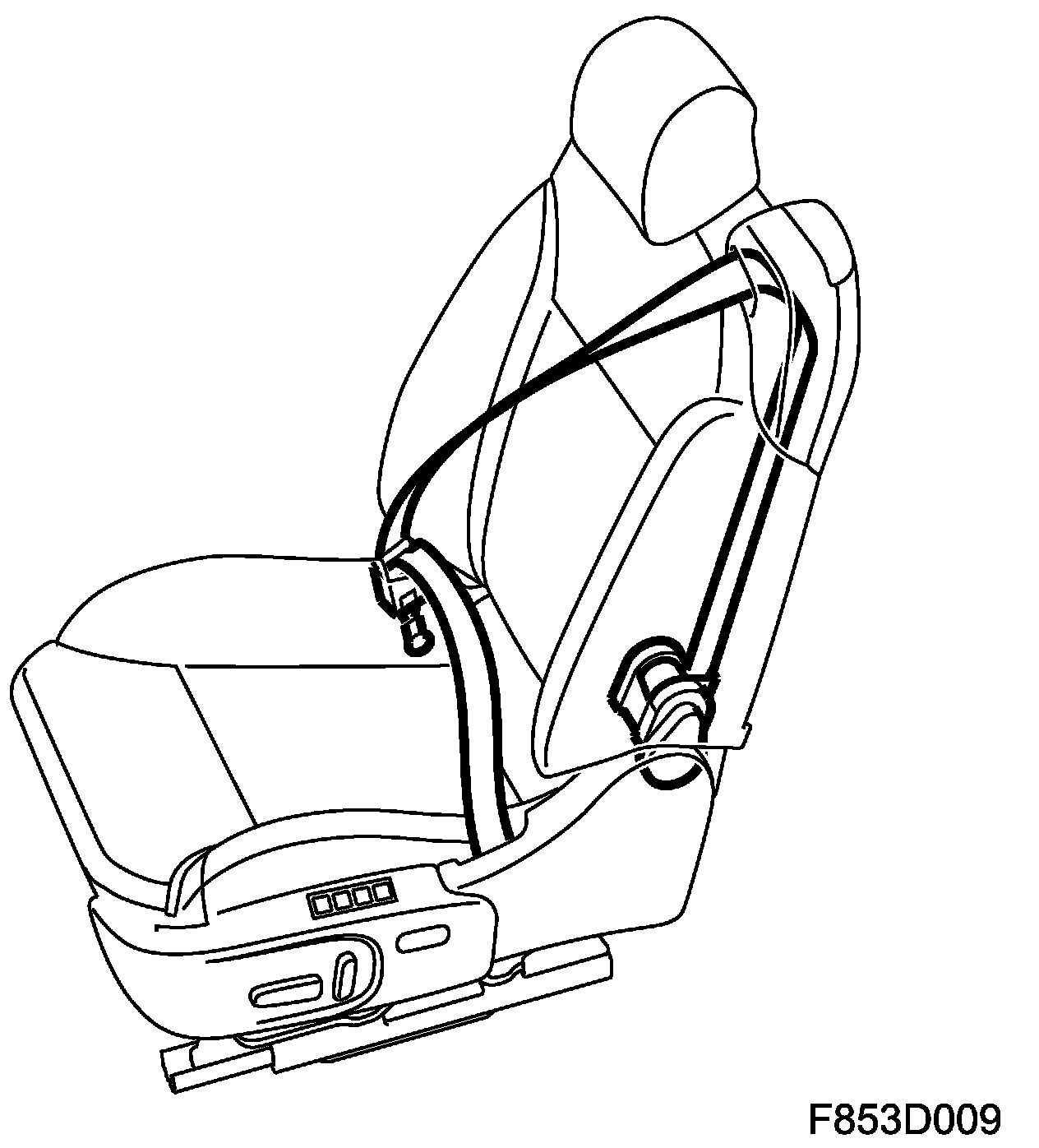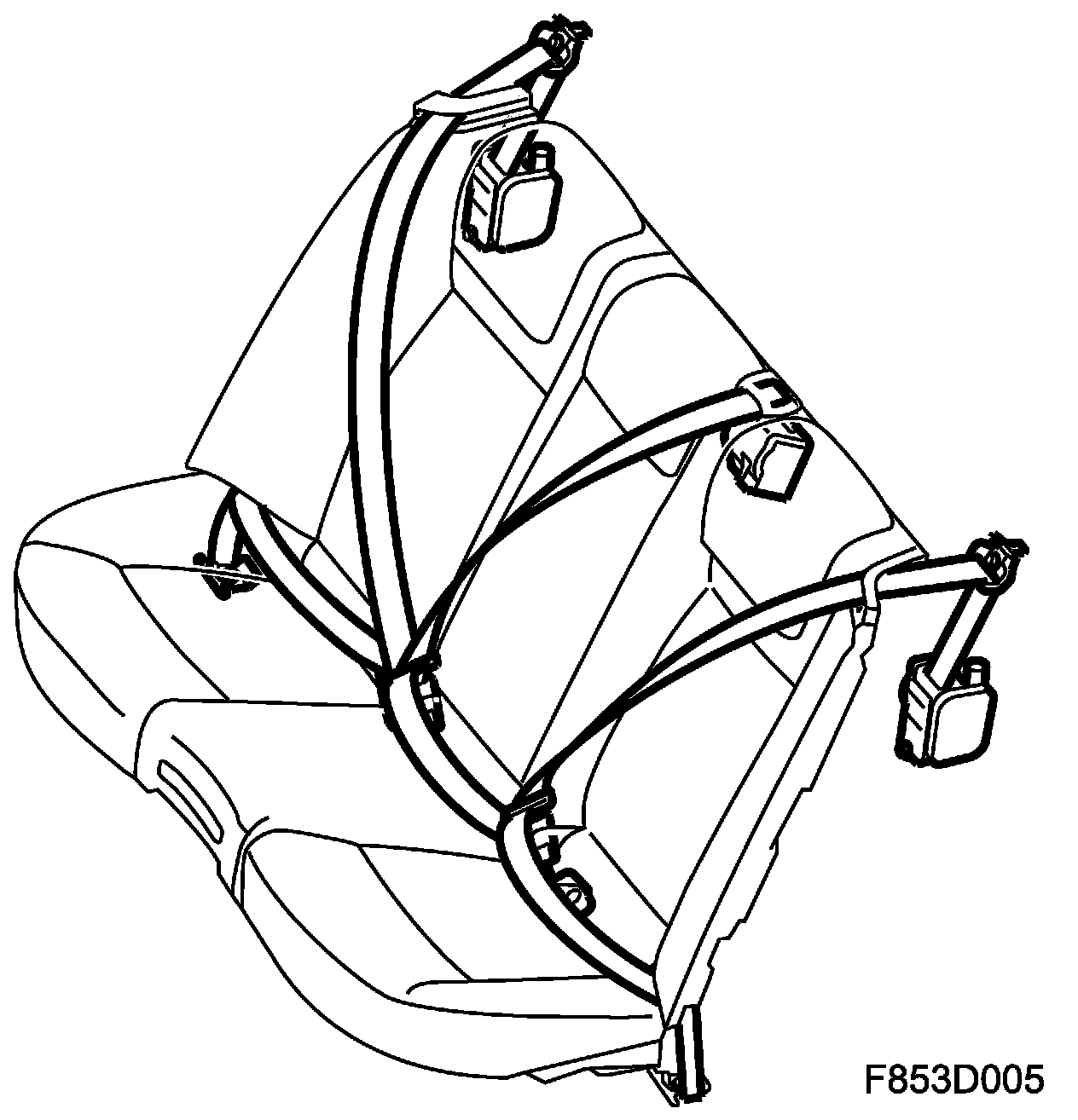 The seatbelt system consists of two belts integrated in the front seats and two belts in the rear seat. All seatbelts are of the three-point type. All the seatbelts have belt pretensioners. The front belt pretensioners are integrated in the seat and mounted in the lower section of the driver and passenger seat. The rear belt pretensioners are mounted behind the backrest of the rear seat.