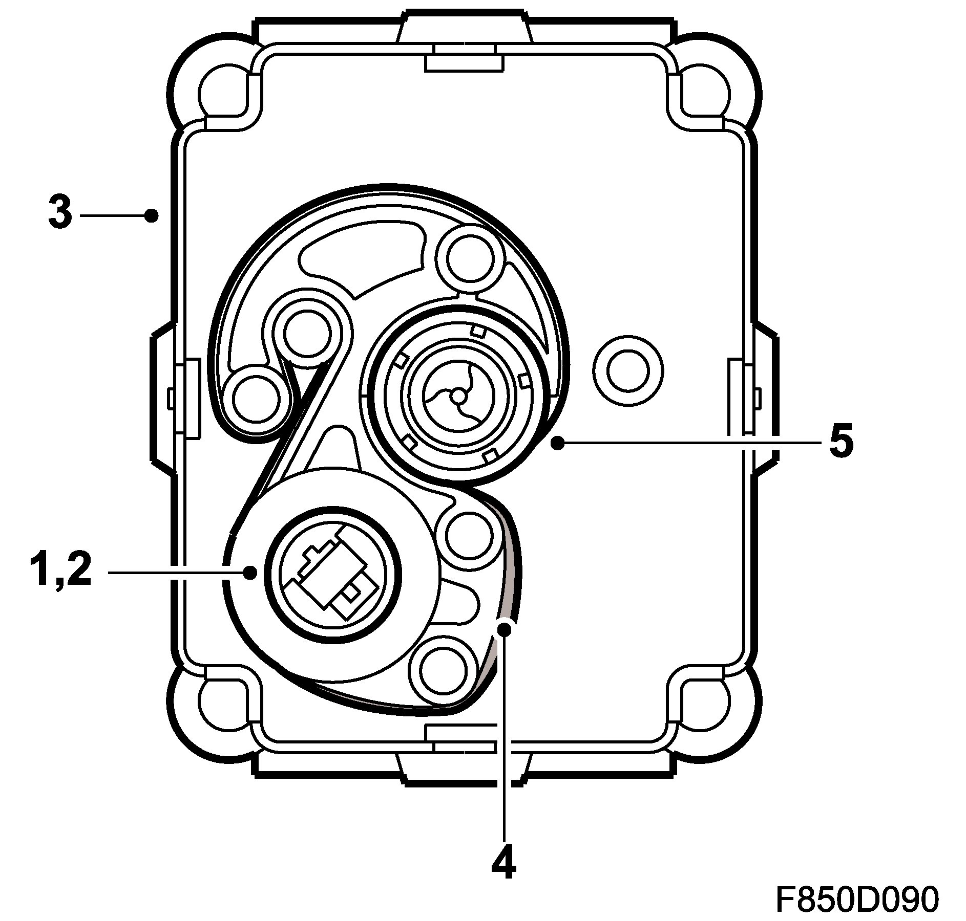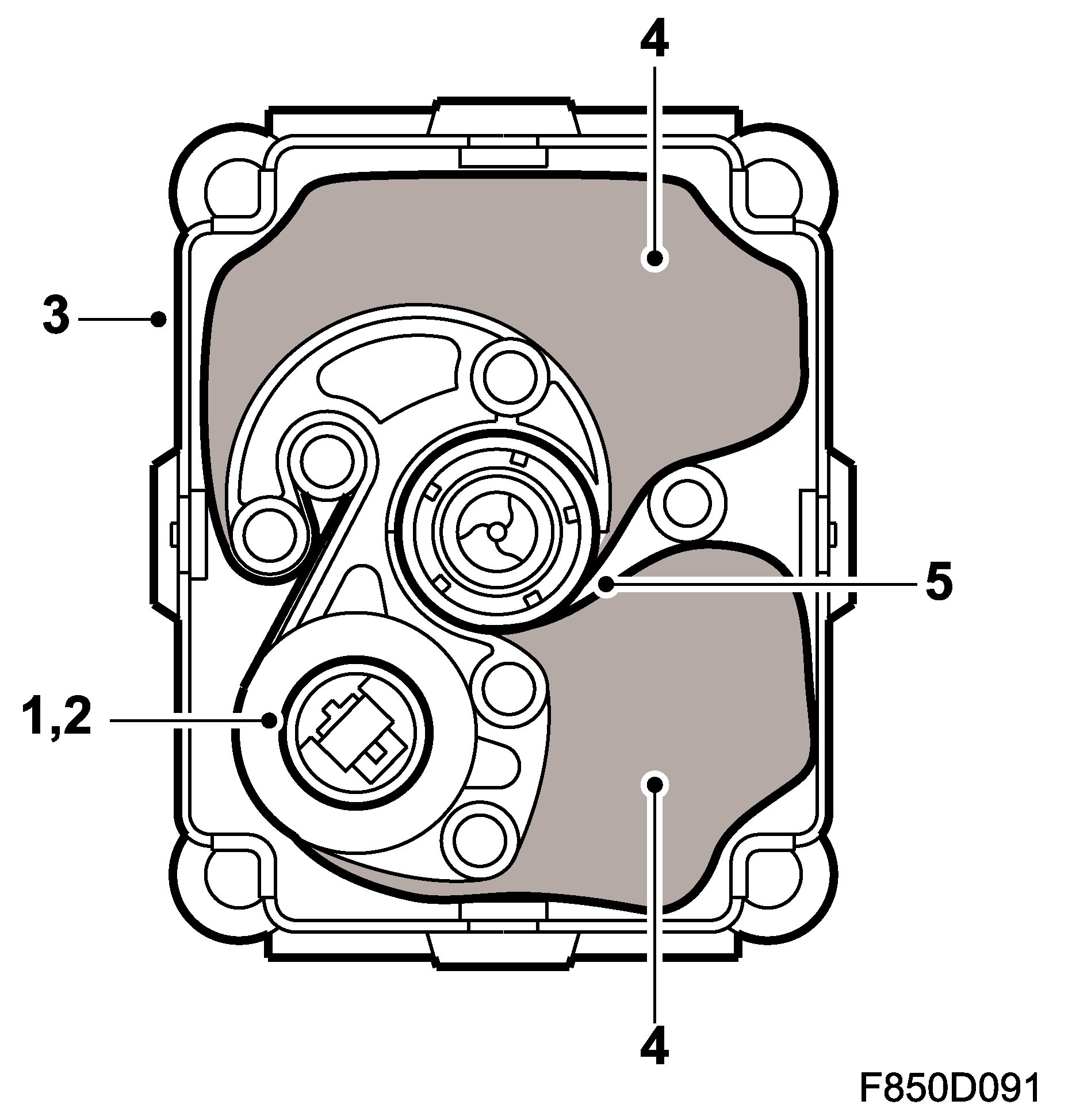 When the compact belt tensioners are activated, the airbag control module applies a B+ voltage feed. An electric detonator ignites an explosive charge which heats and expands in the belt tensioner housing. The gas flow is distributed into two chambers (1) and pushes a steel band (2) which tightens the seat-belt. The belt is pulled taught and takes up the slack in the belt while restraining the passenger. The belt slack is taken up with a force-limiting torsion unit in the belt roller which restrains bodily movement as gently as possible.