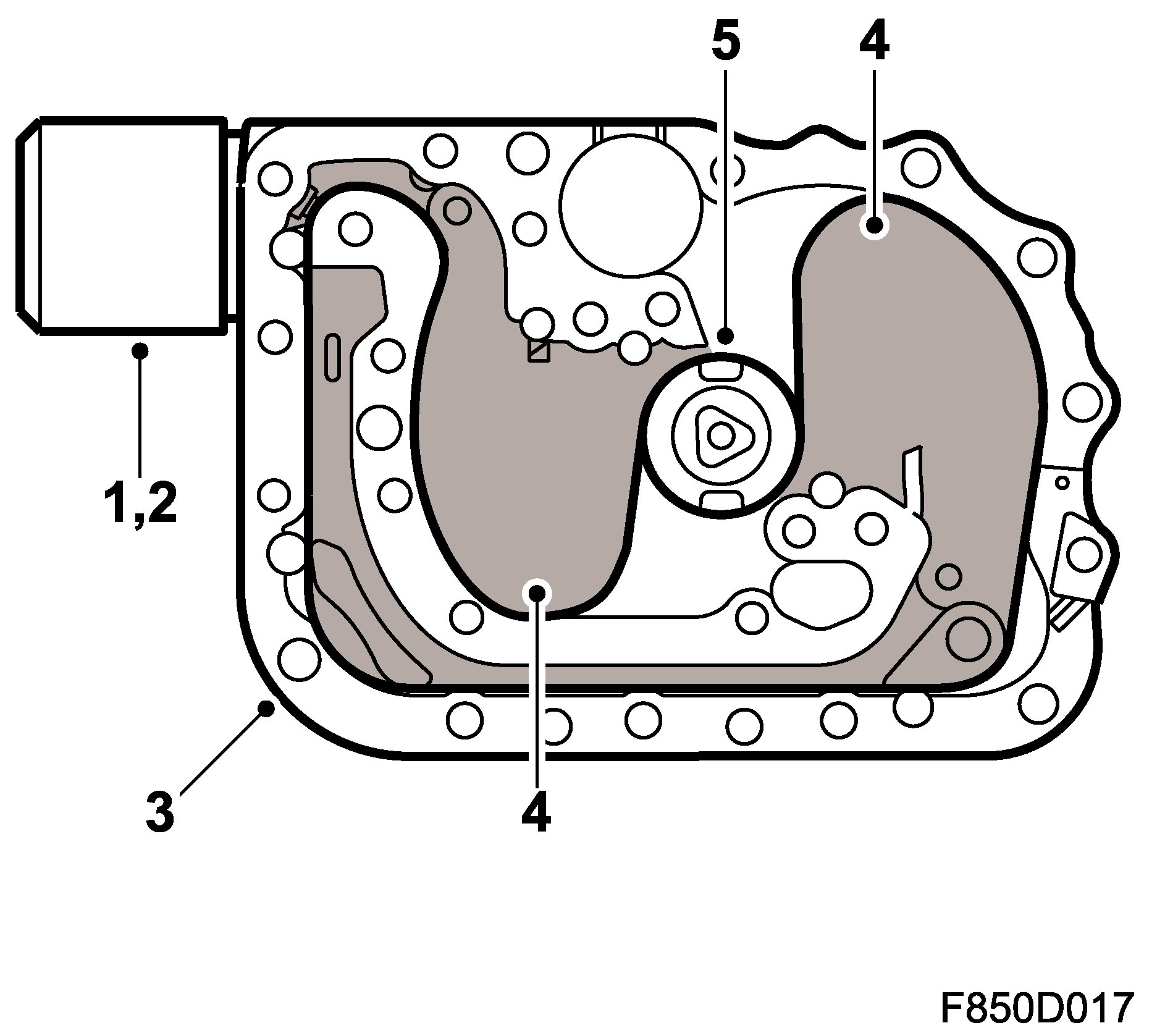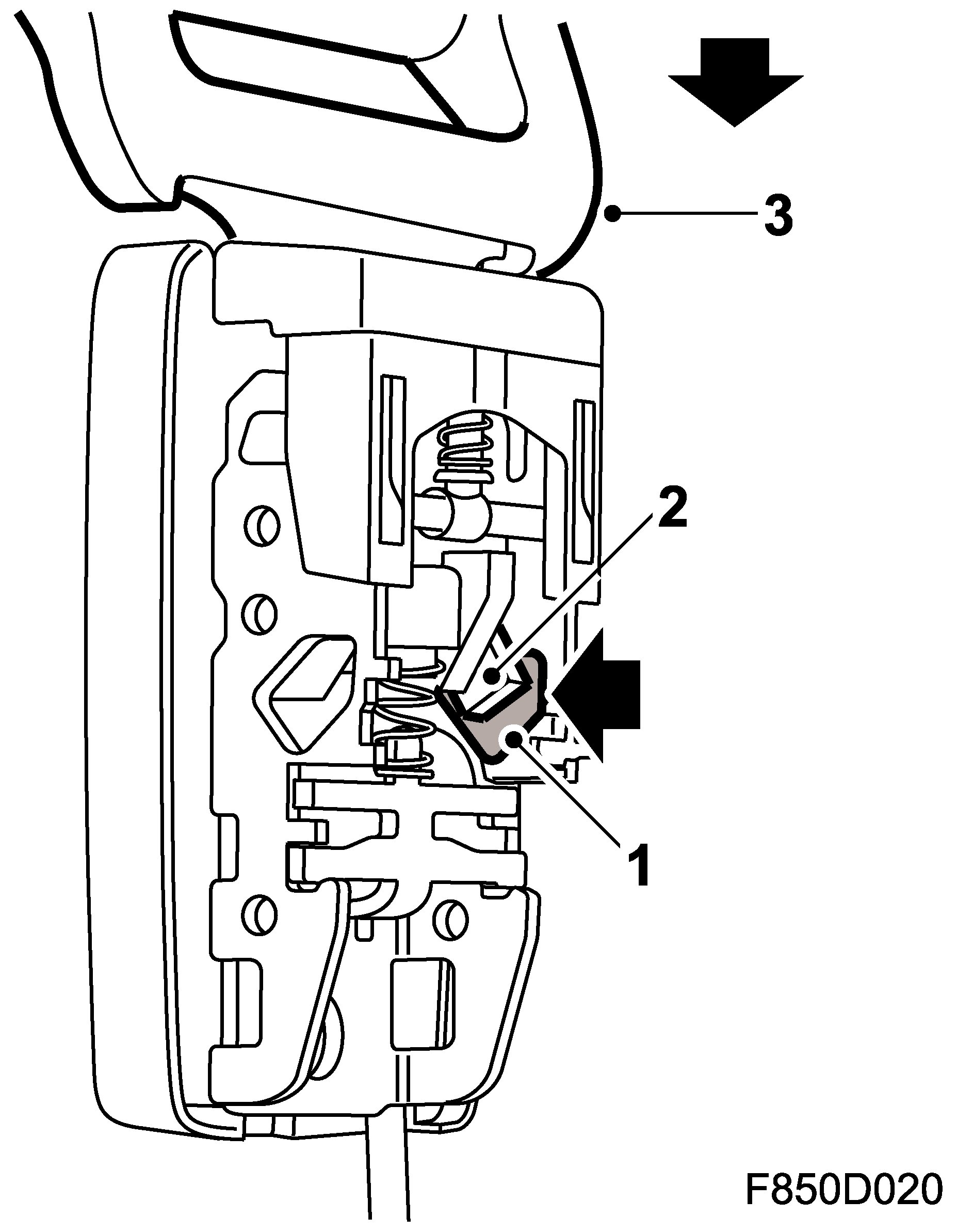 The belt tensioners are compact type. When the belt tensioners are activated, the airbag control module sends a B+ voltage. An electric detonator (1) ignites a pyrotechnical charge (2), which generates a gas pressure that expands in the belt tensioner housing (3).