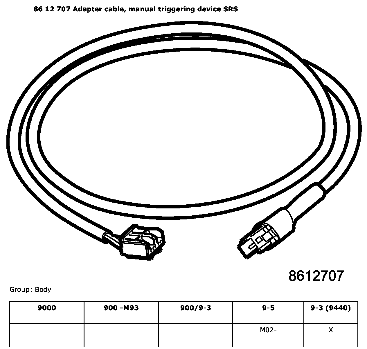 86 12 707 Adapter Cable, Manual Triggering Device SRS: