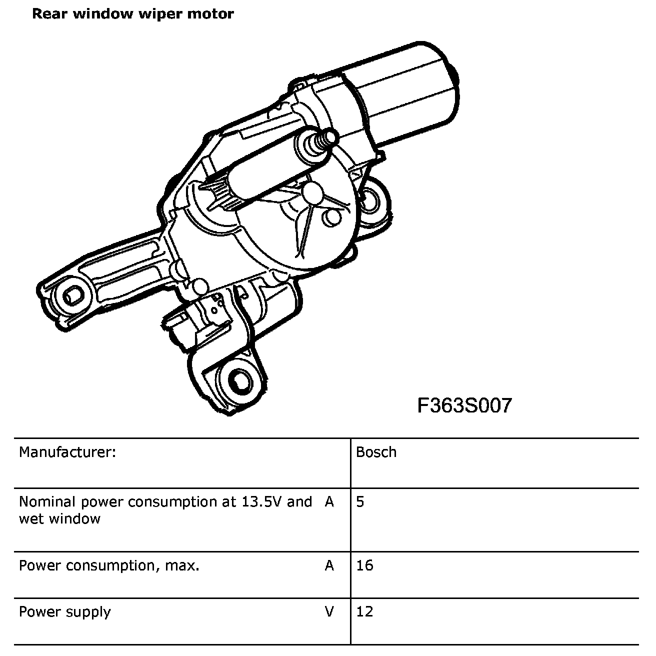 Rear Window Wiper Motor: