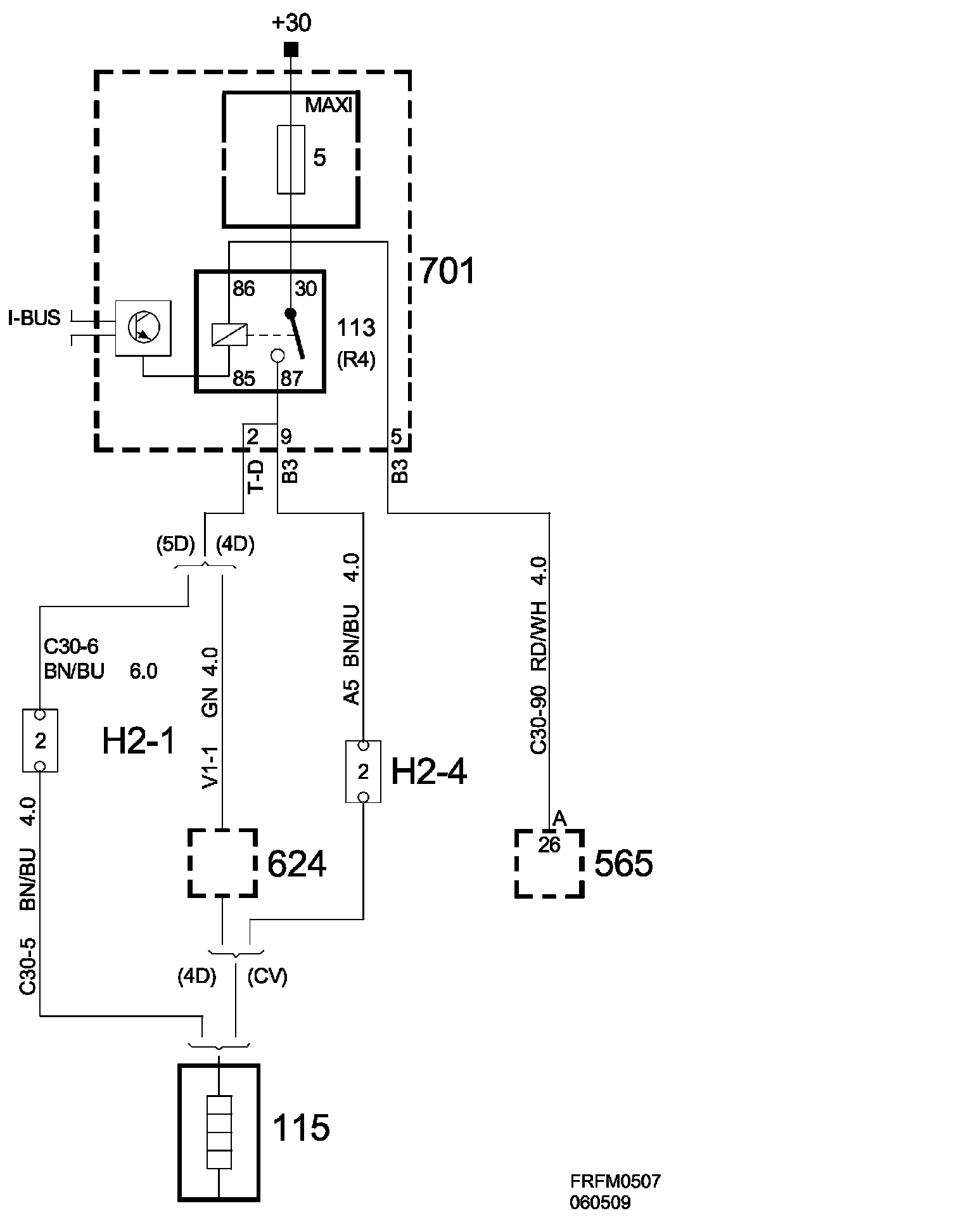 Fuse 5, Rear Electrical Centre 701, Maxi-fuse: