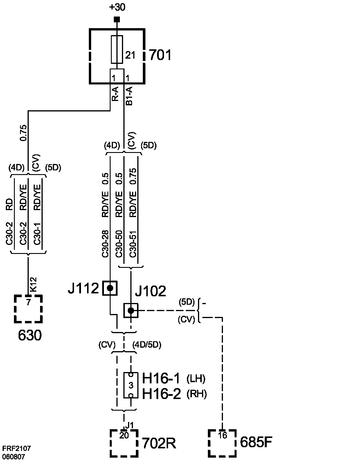 Fuse 21, Rear Electrical Centre 701: