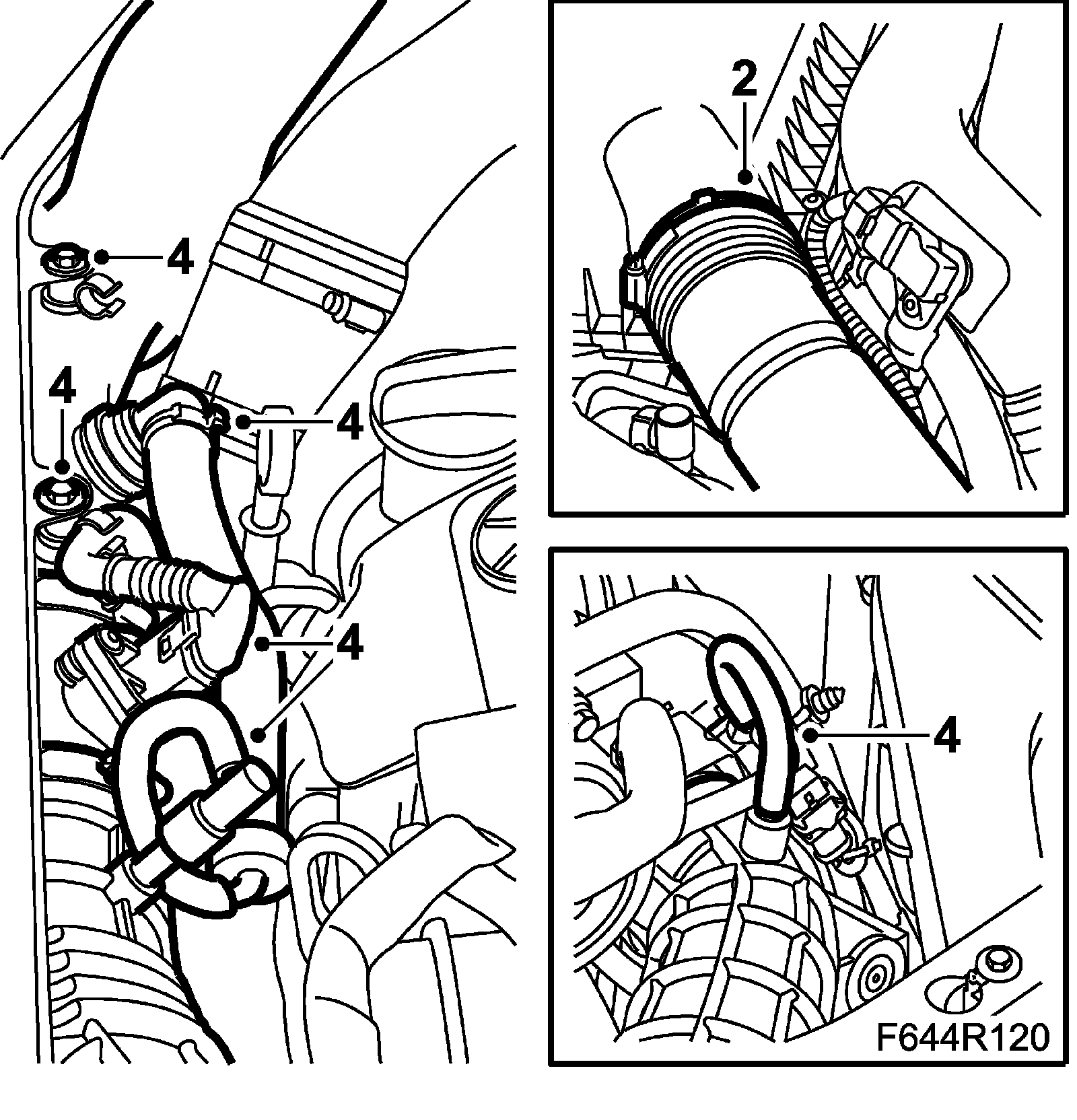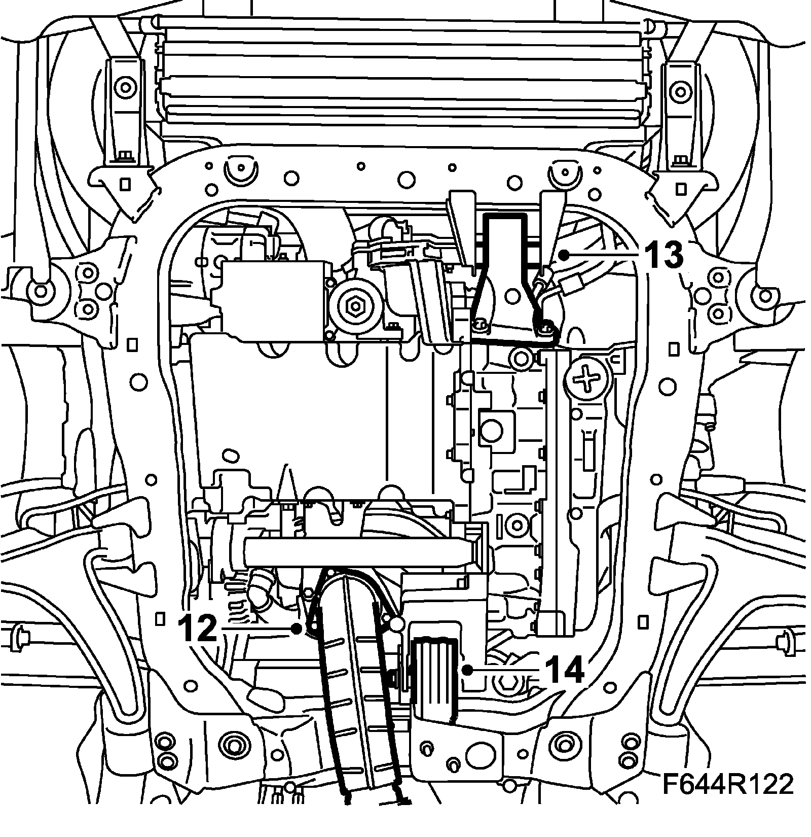 5. Lower the trolley lift and move it out of the way. Attach the coolant hose to the holder on the subframe.