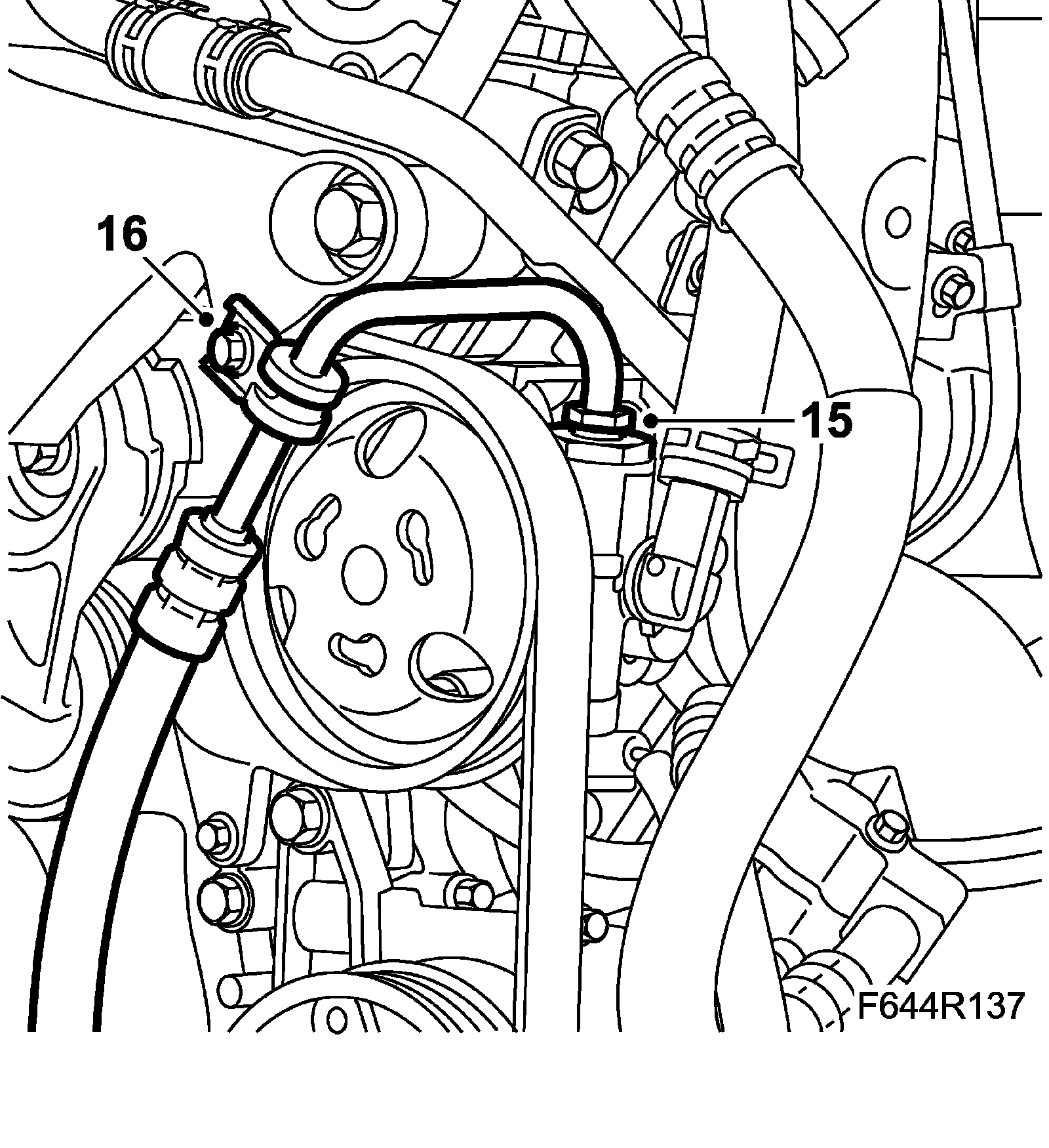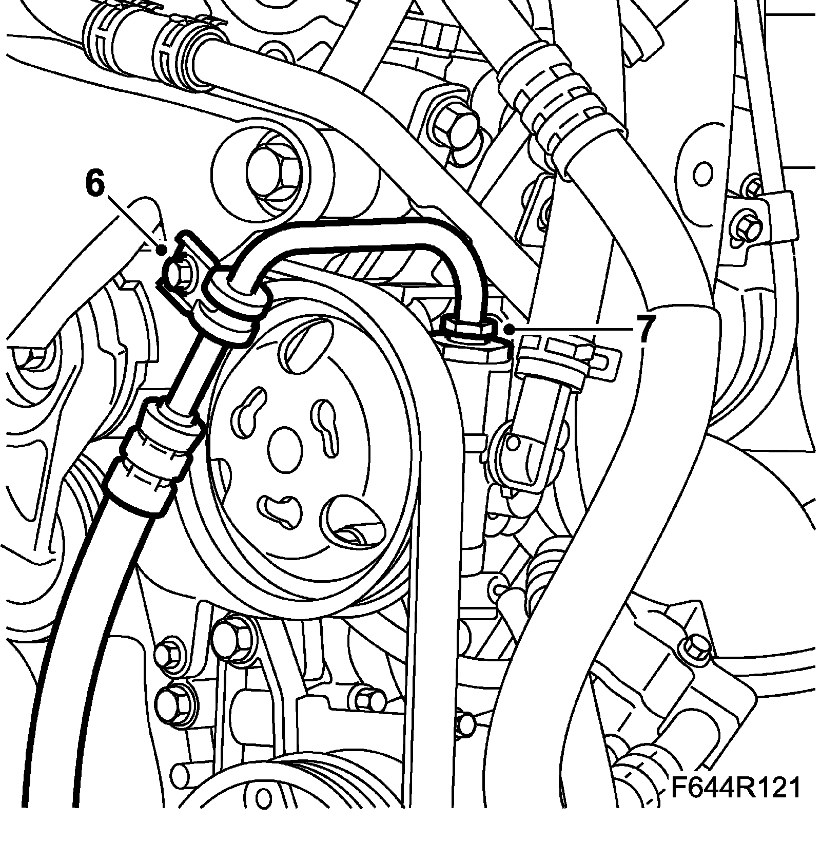 7. Detach the delivery line from the power steering pump using 32 025 061 Crowfoot wrench.