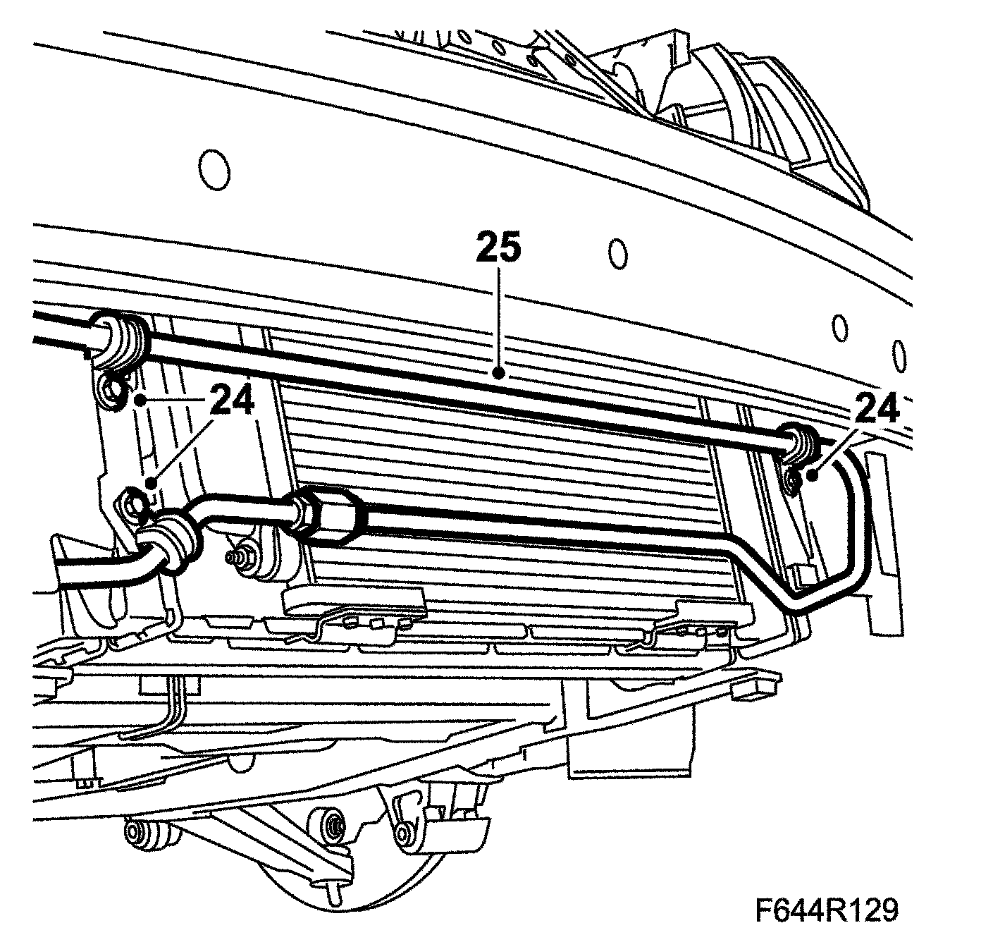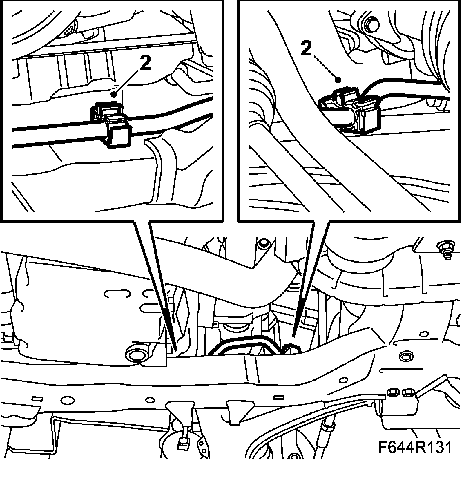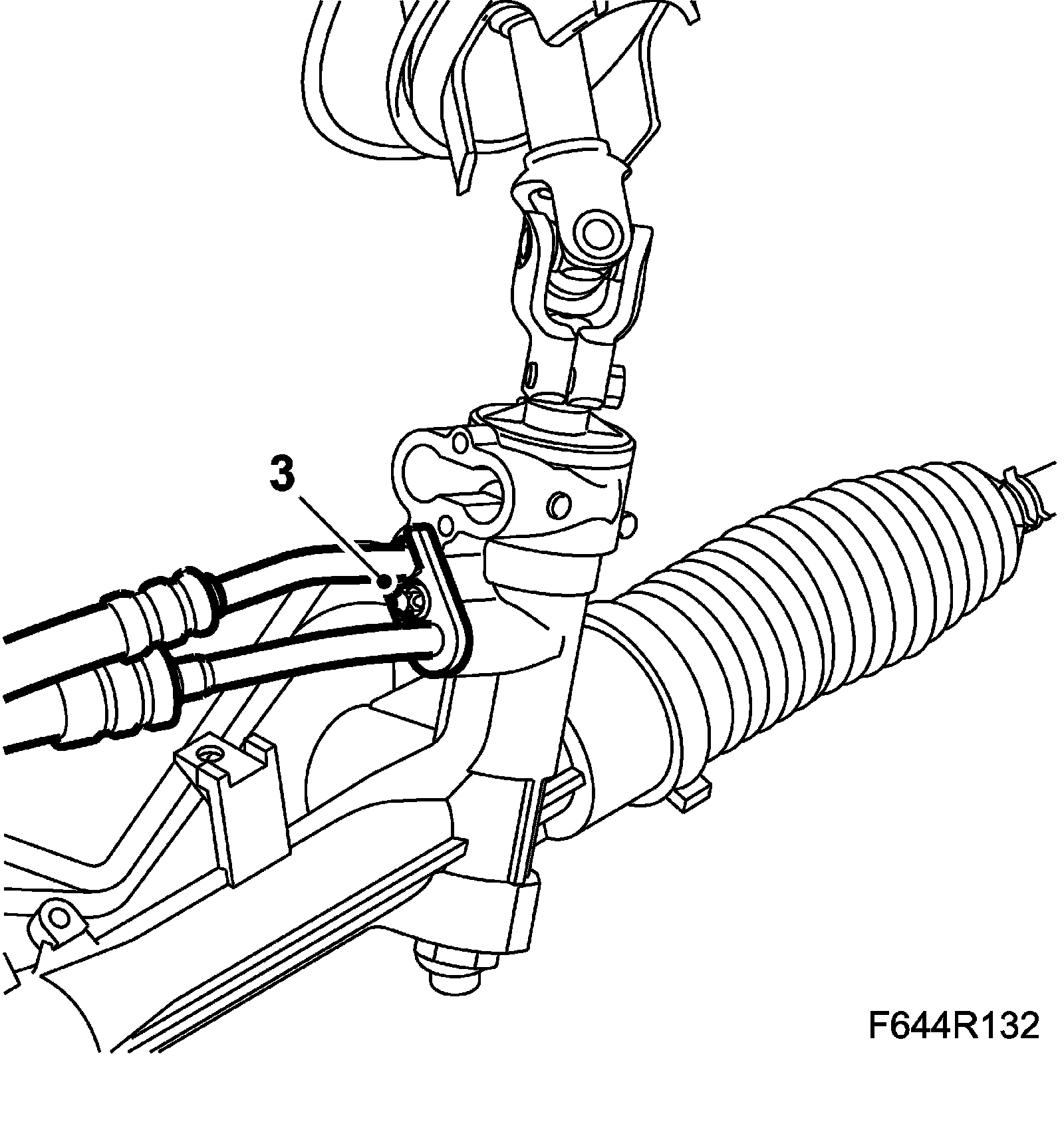 22. RHD: Remove the delivery line from the clip on the steering gear.