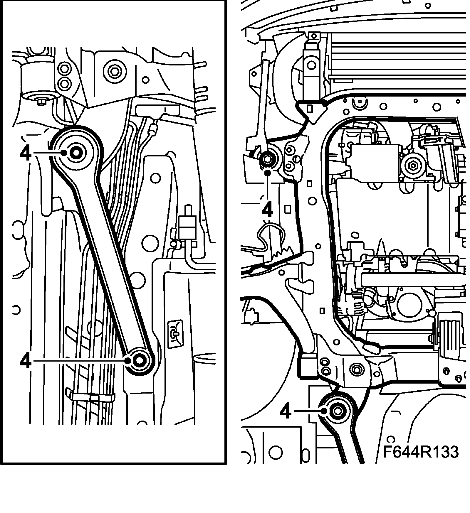 14. Remove the bolt holding the rear torque rod to the subframe.