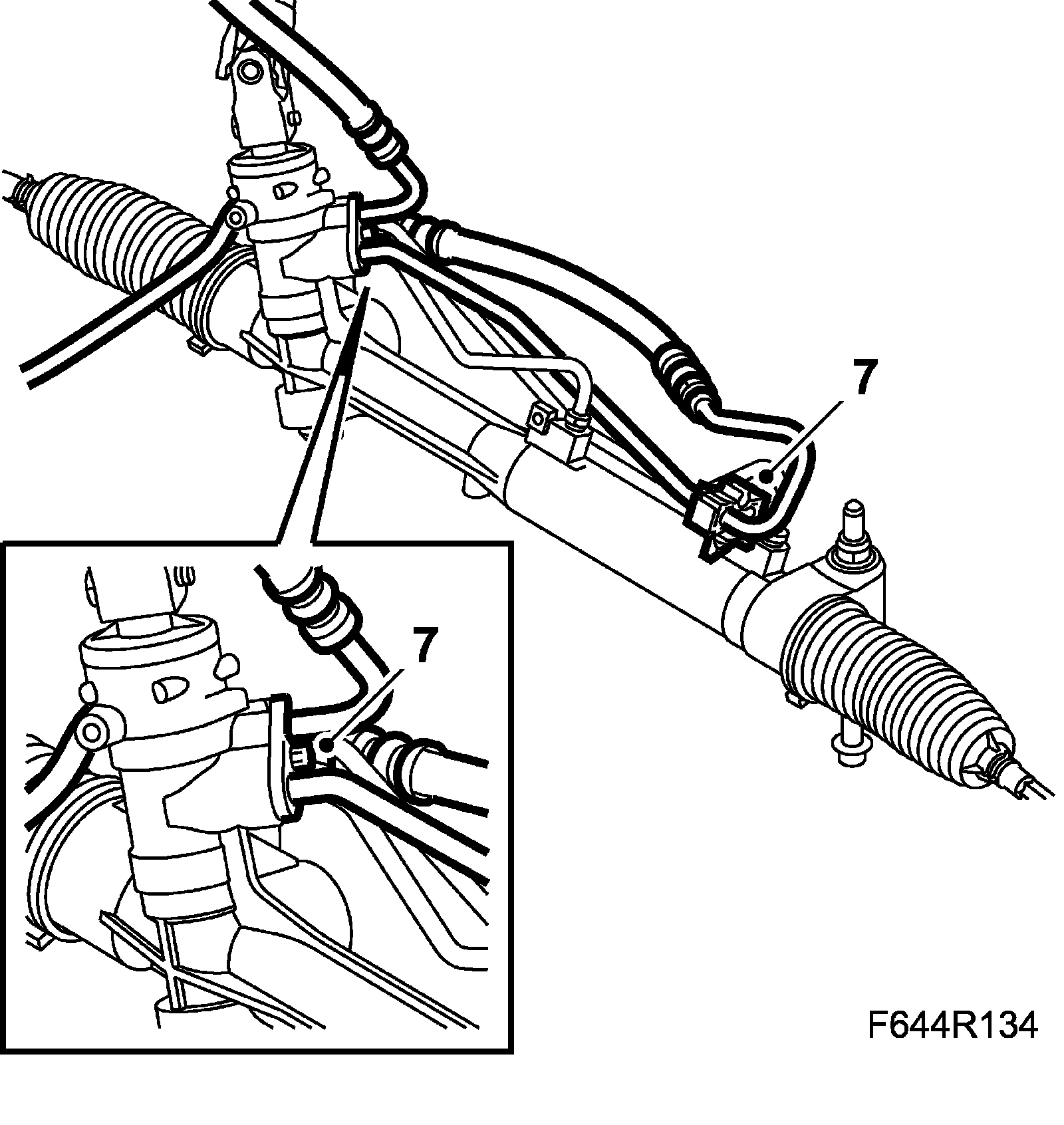 7. RHD: Fit the delivery line and return line to the steering gear and the clip on the steering gear.