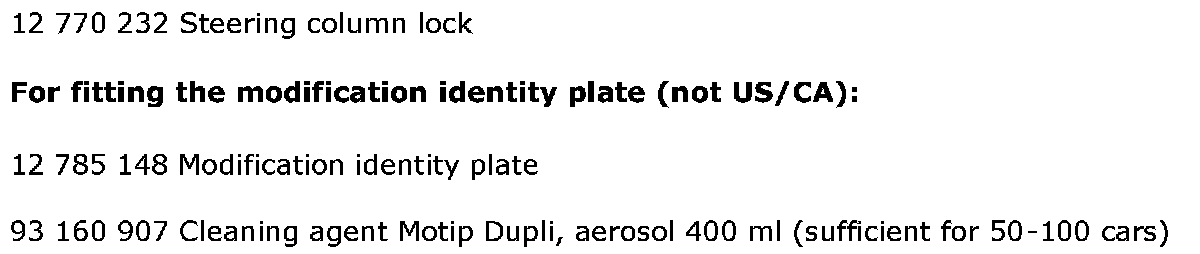 Before proceeding, check box B1 of the modification identity plate. From and including M04 the car's Warranty and Service Book contains the Table of Modifications. A modification identity plate must be fitted in accordance with the section "Fitting the modification identity