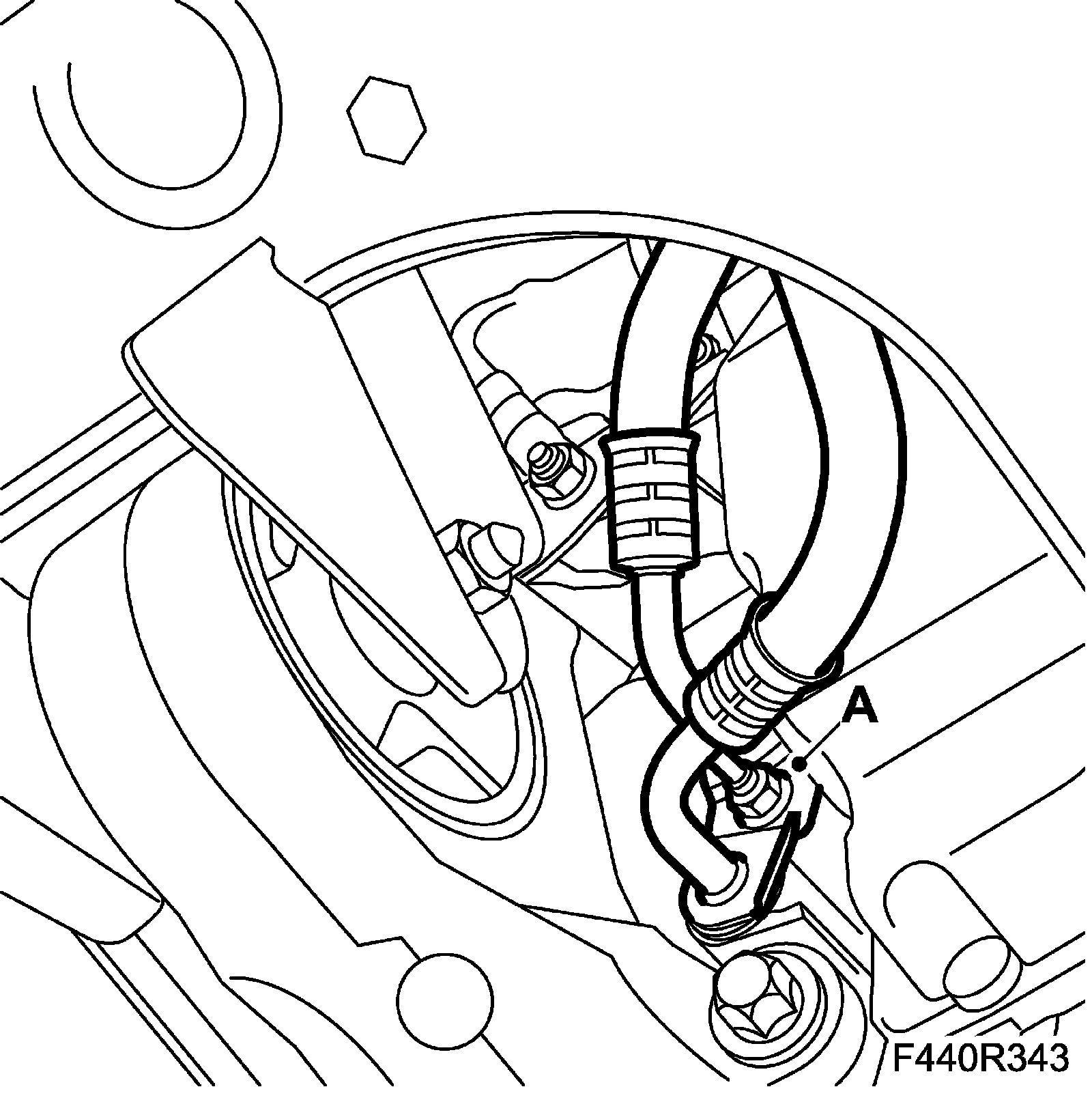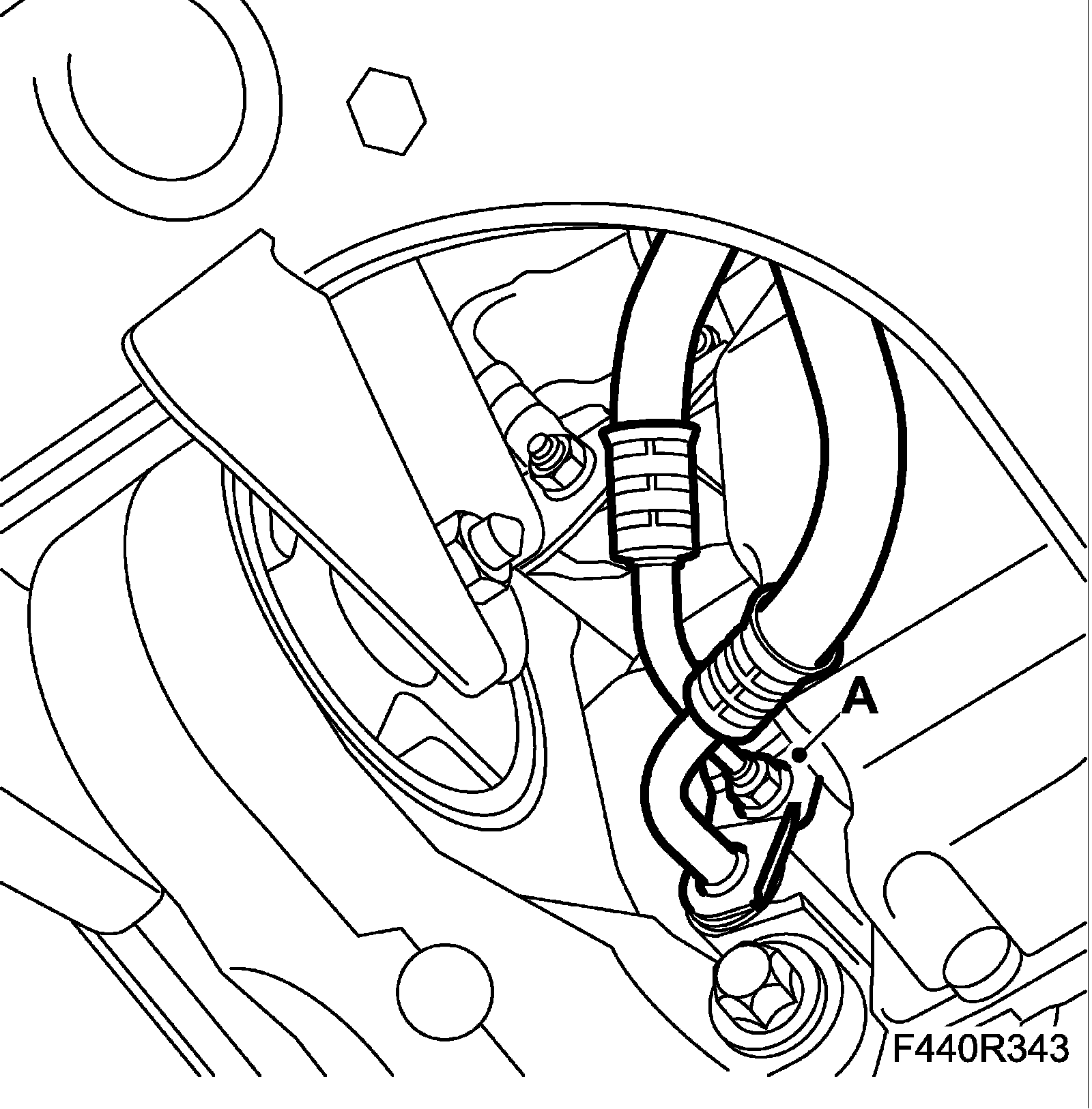 ^ Remove 1 x hose clip (A).