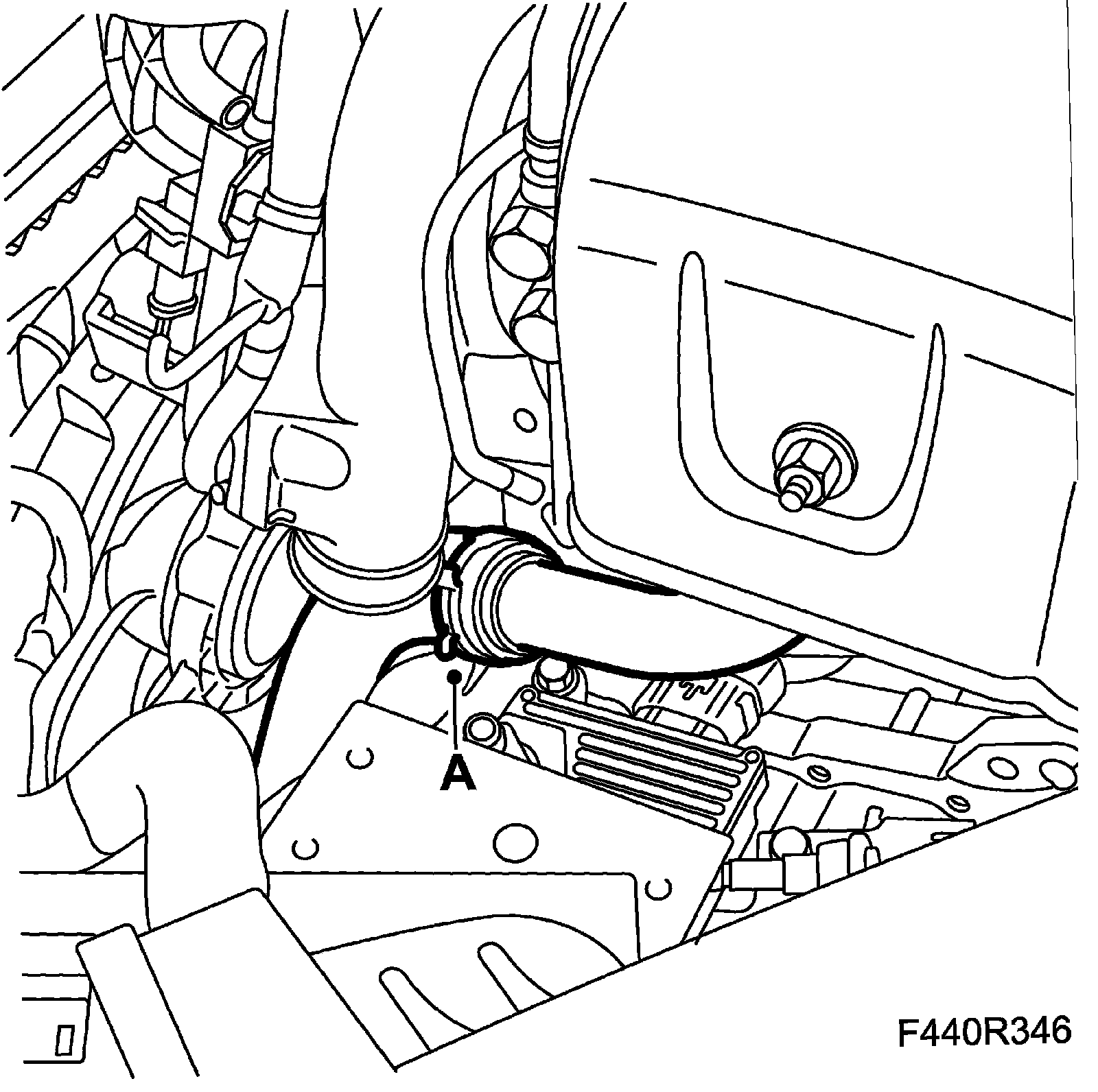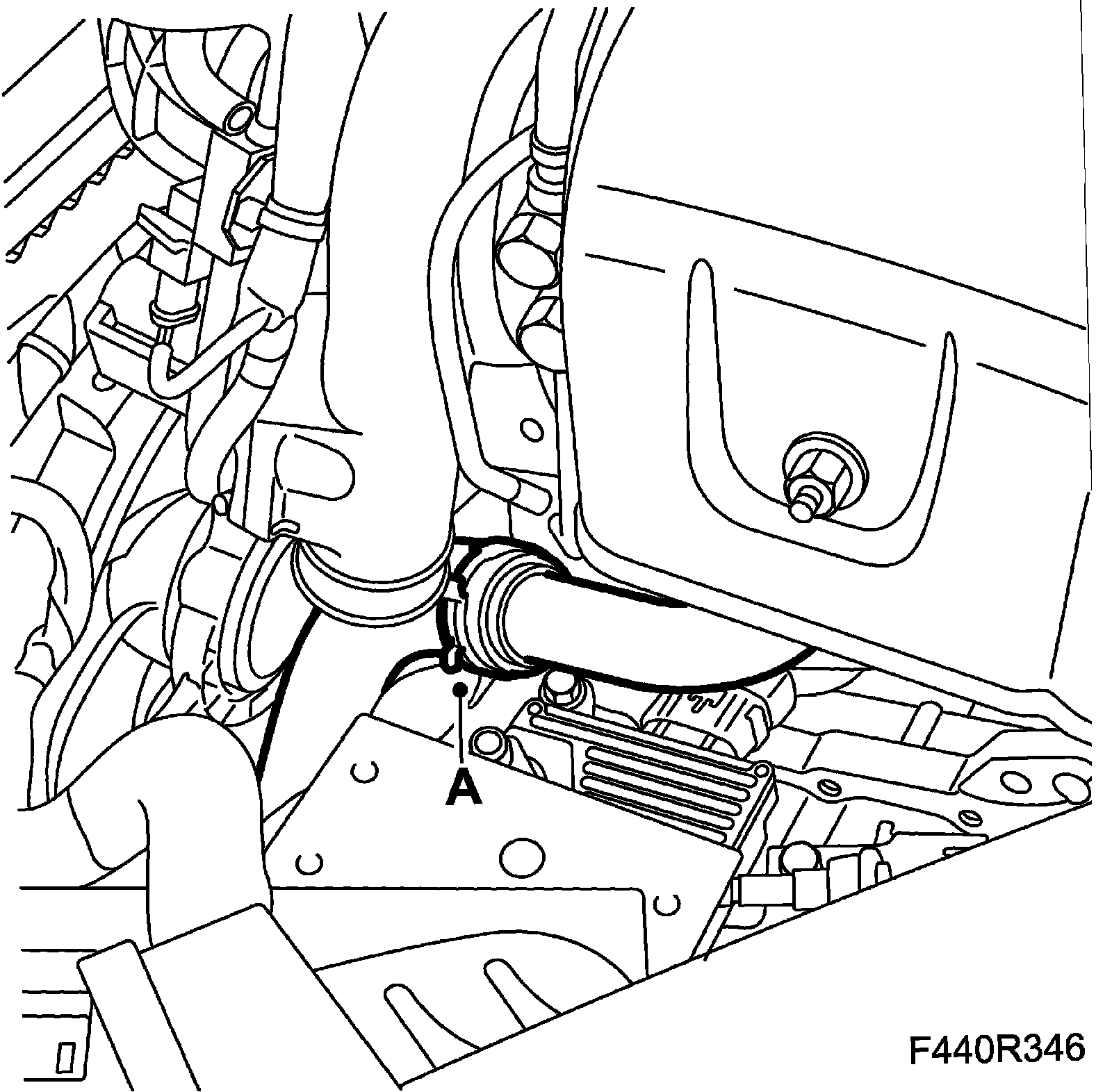 14. Fit the intake hose to the turbo (A)