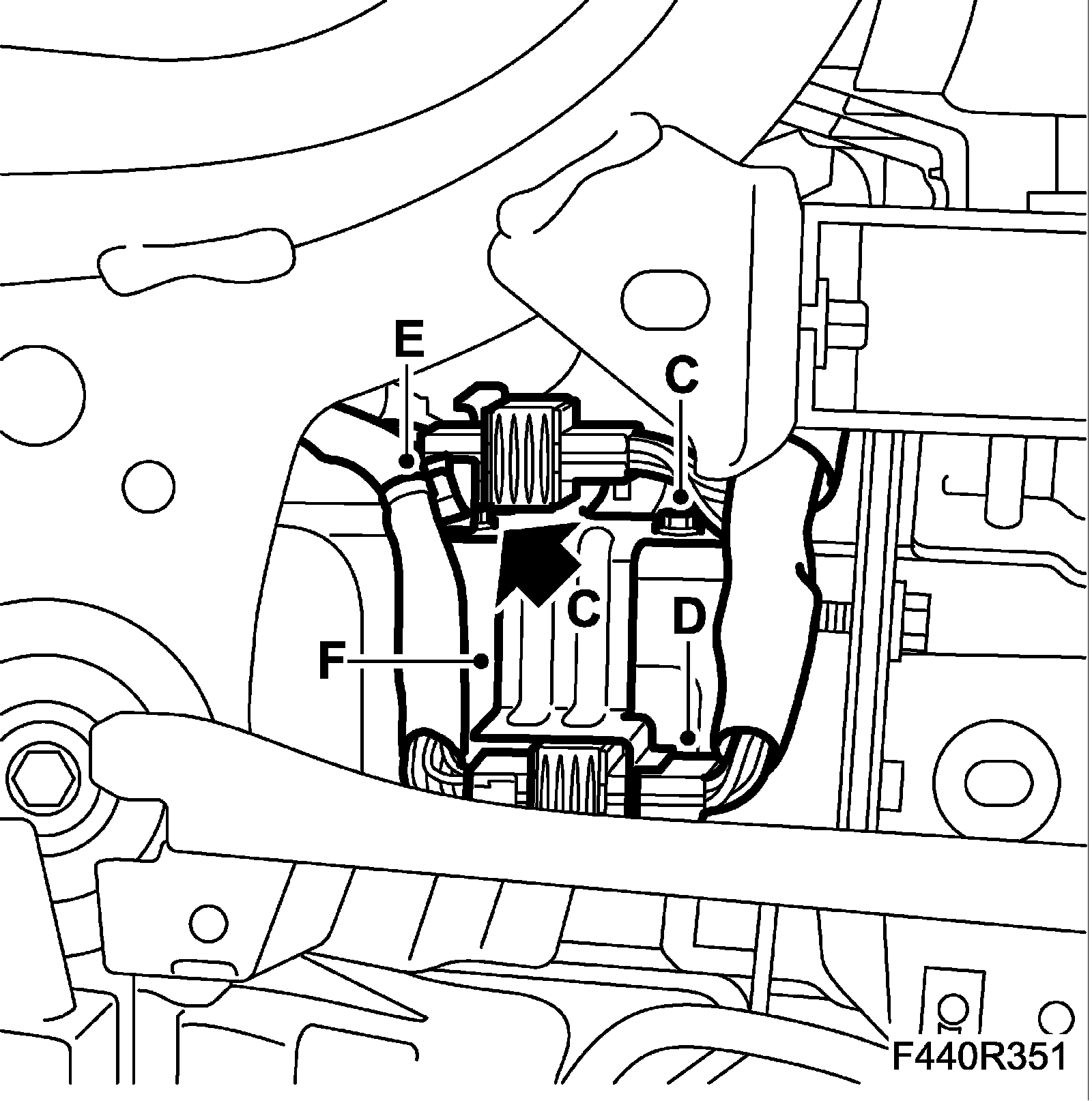 15. Remove the solenoid valve (C) from the turbo, 1 x clip