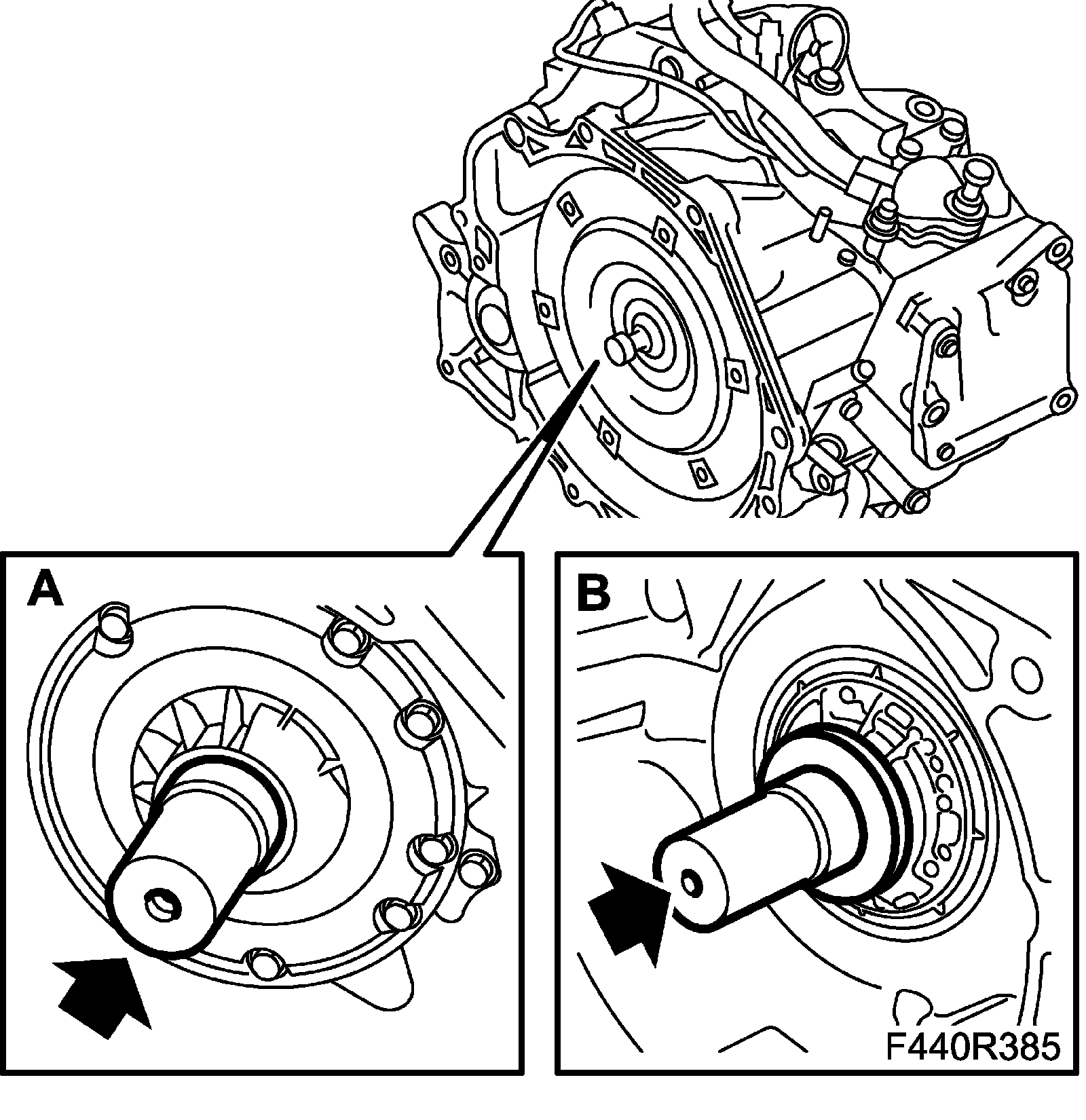2. Thread in 87 92 384 Puller, torque converter seal inside the seal and use 83 90 270 Sliding hammer to detach the seal.