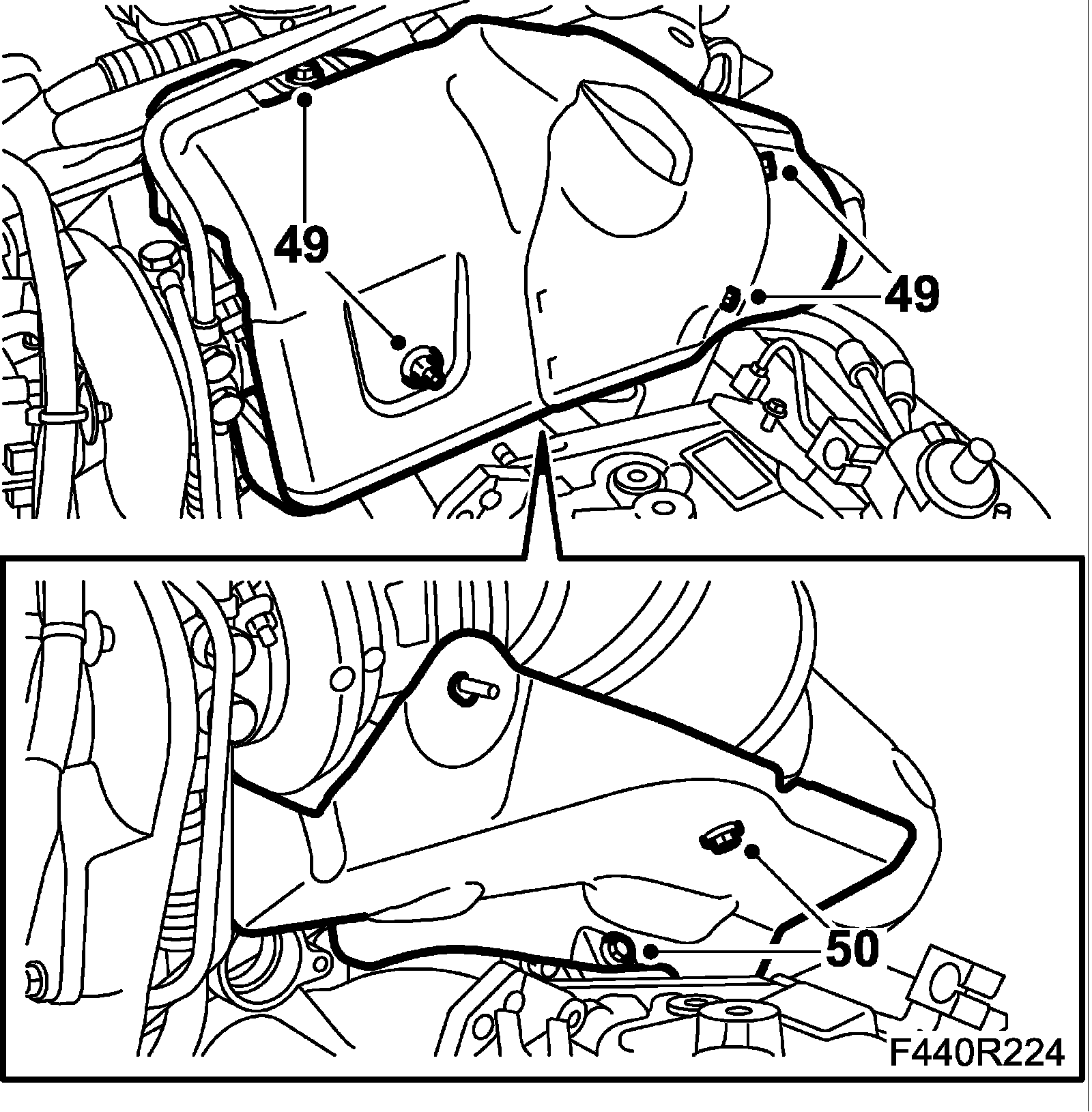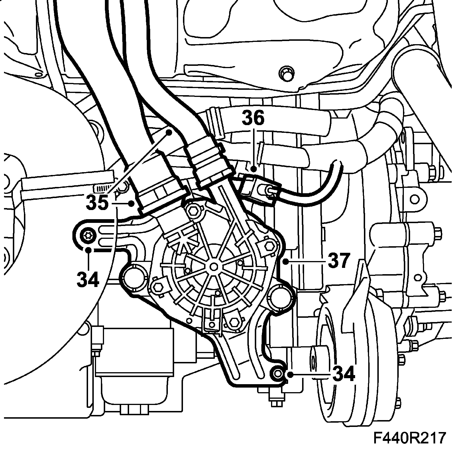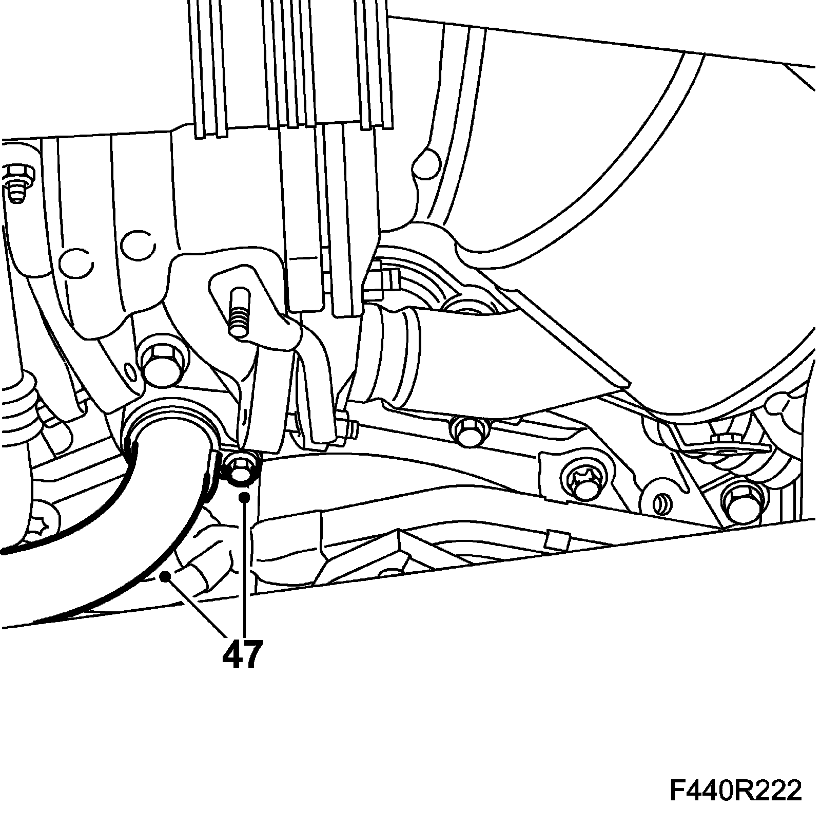 33. Remove the front torque rod bracket from the gearbox.
