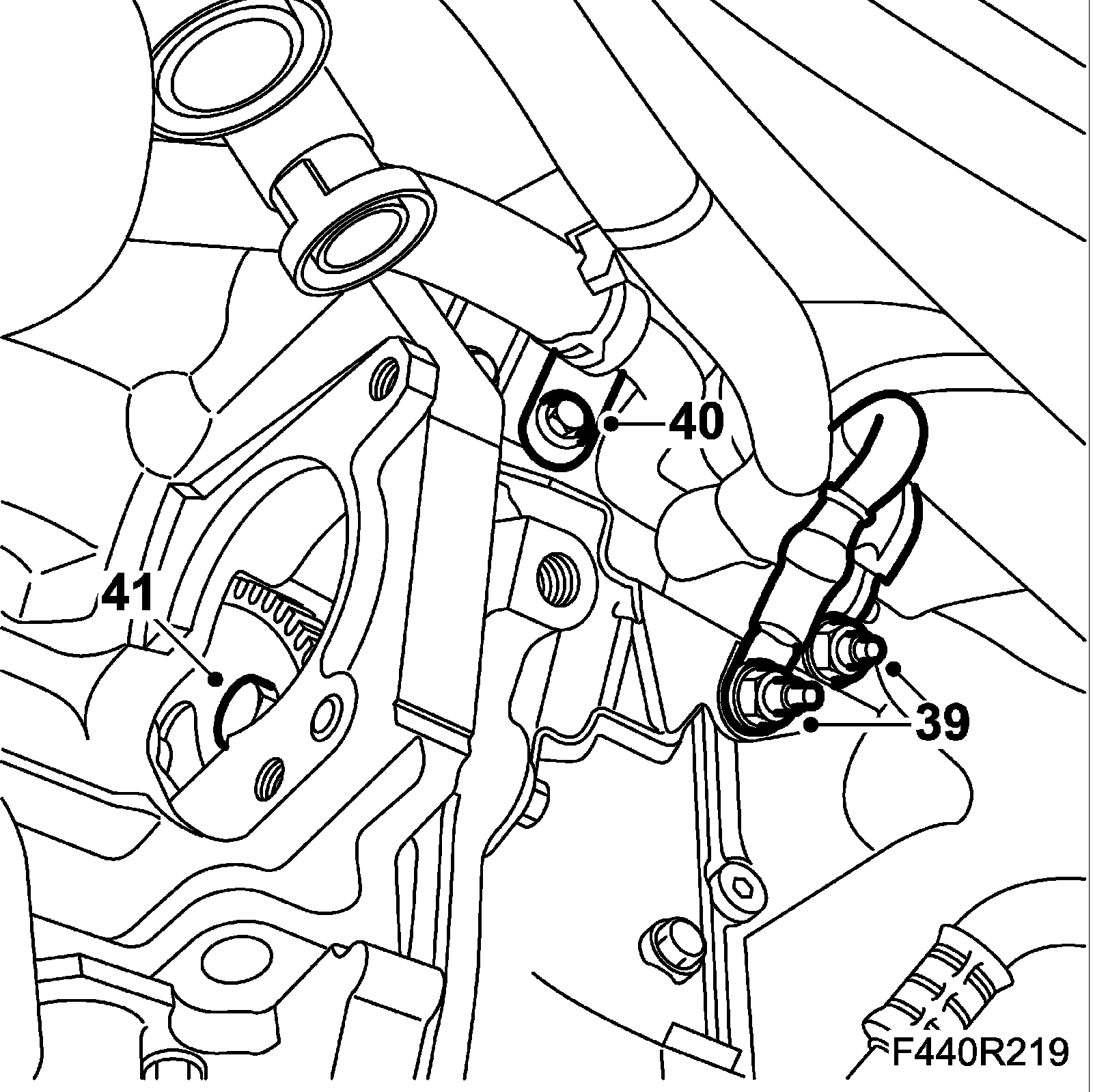 40. Remove the screw from the coolant pipe attaching lug.