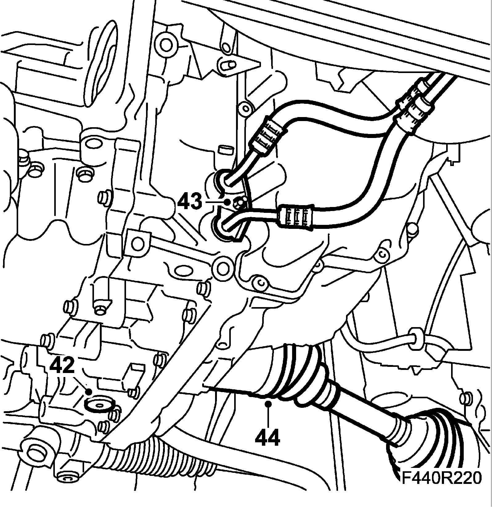 25. Open the clamps holding the power steering pipe to the subframe.