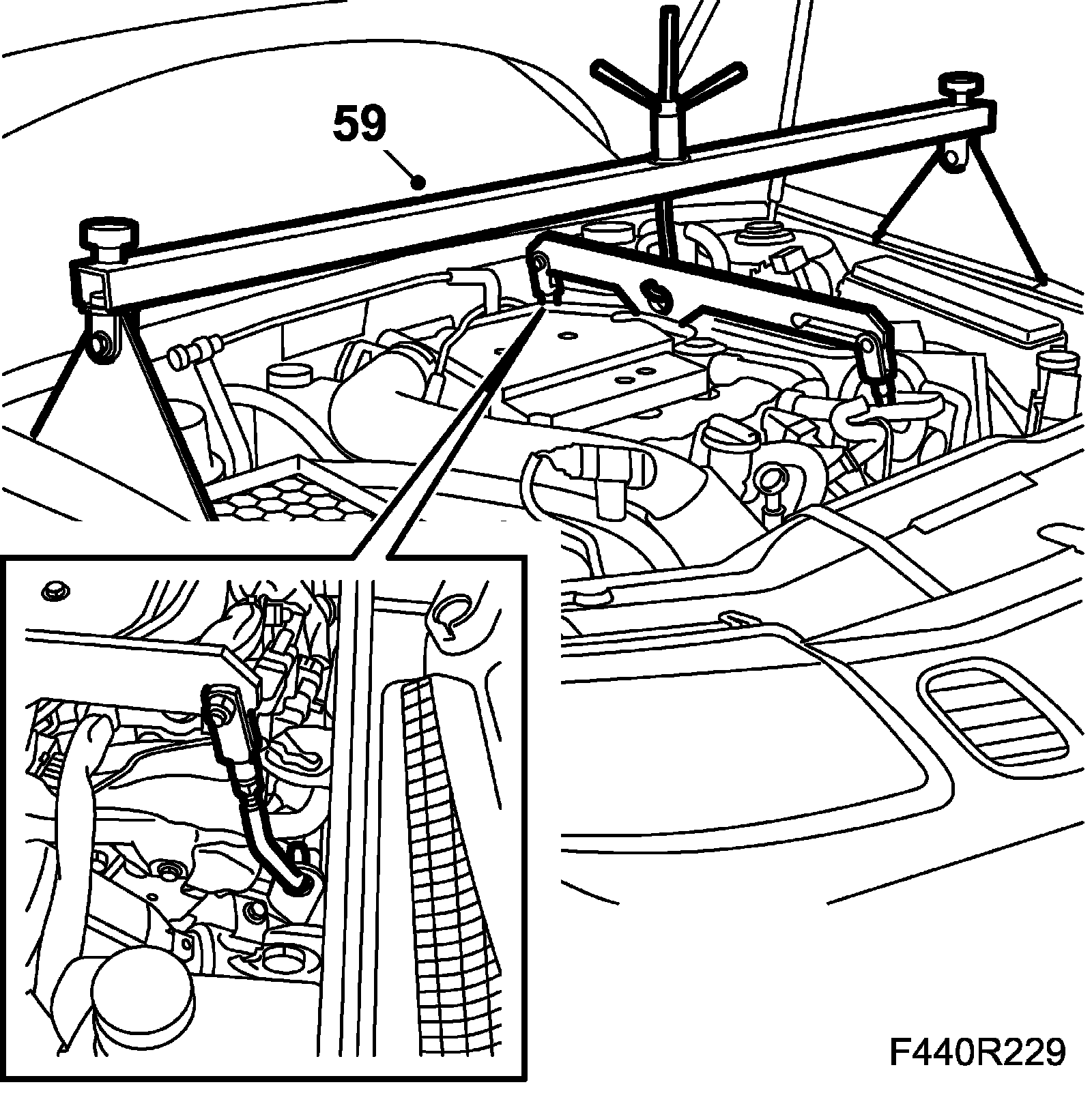 59. Fit 83 94 850 Lifting beam and 83 95 287 Holder with 32 025 037 Hook for lifting beam on the engine. Take the weight off the engine and gearbox.