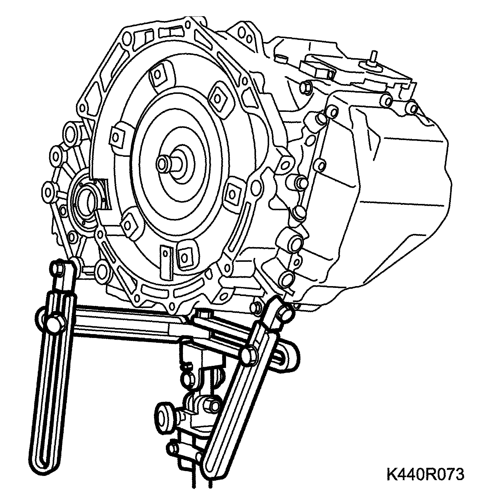 66. Undo the plug and press the torque converter towards the transmission and fit 87 92 574 Holder for holding the torque converter in place while removing the transmission.