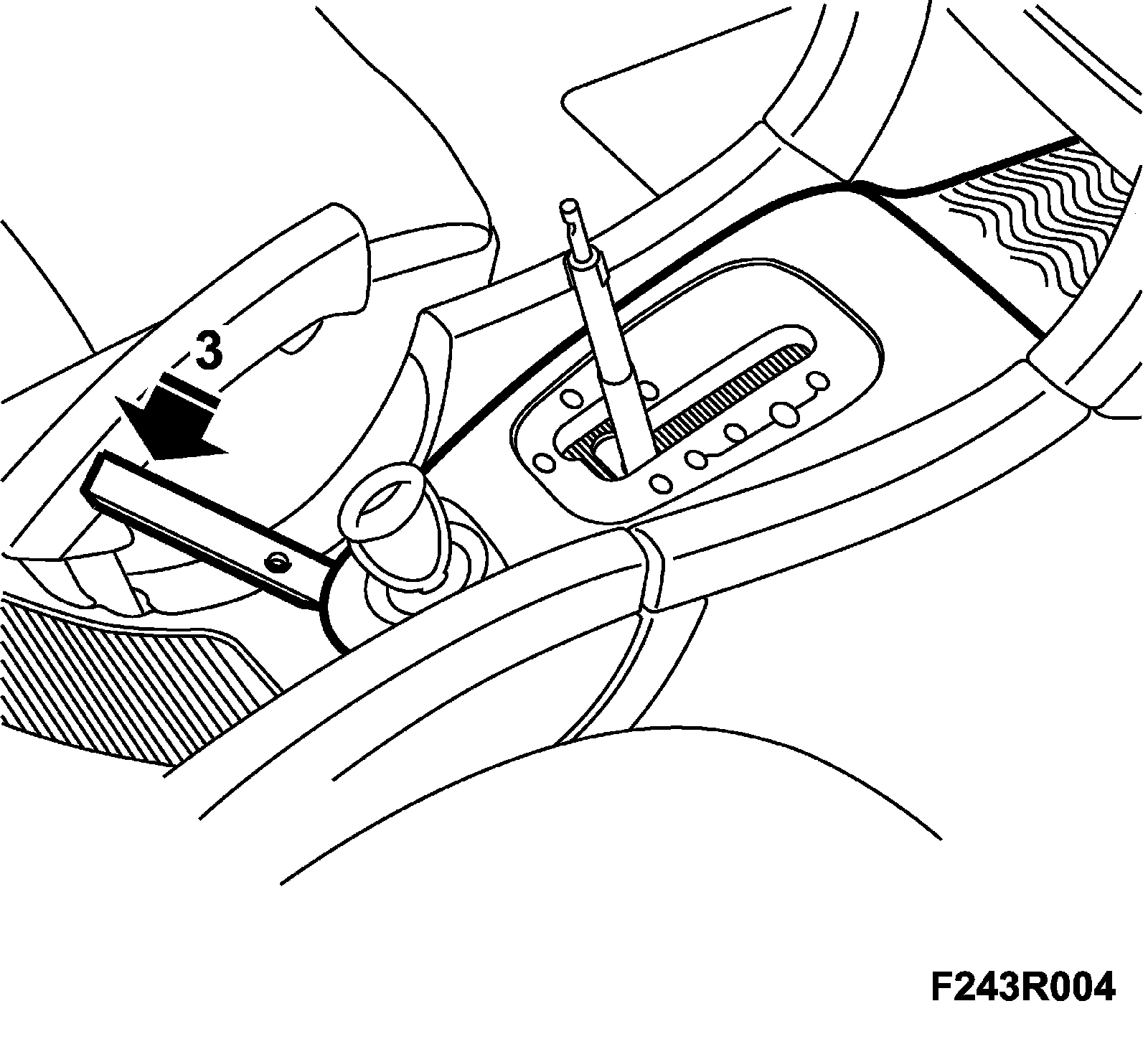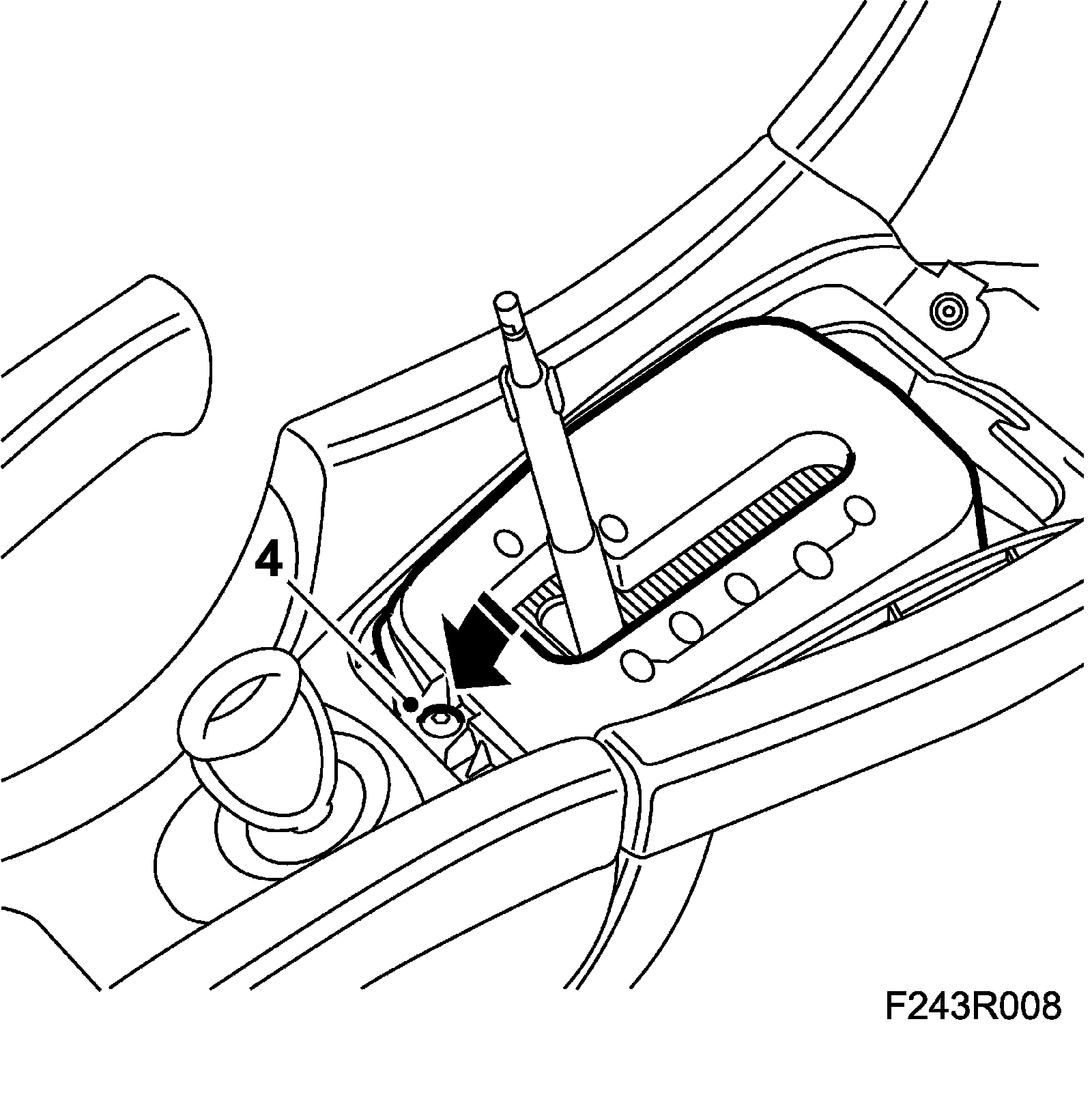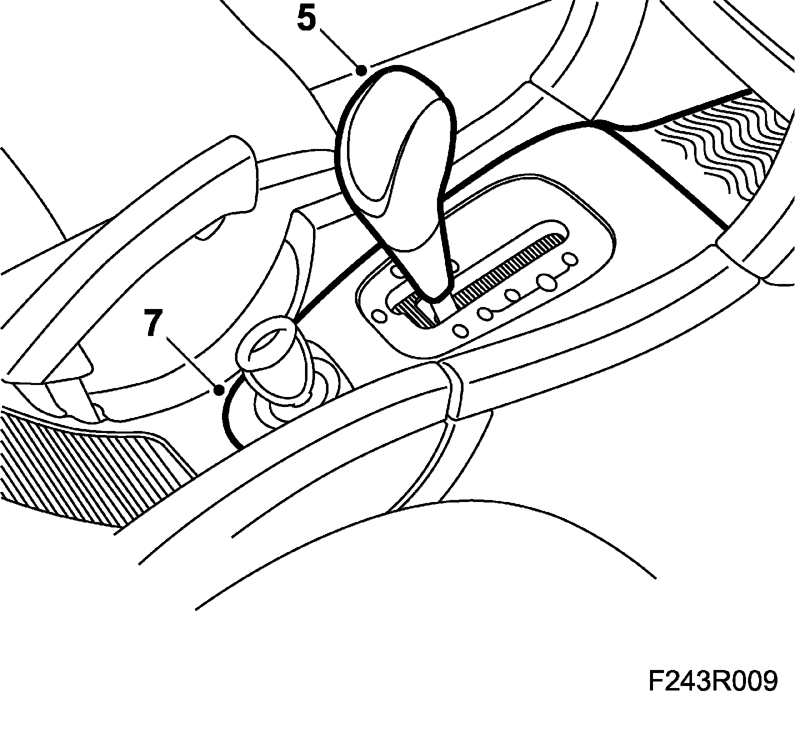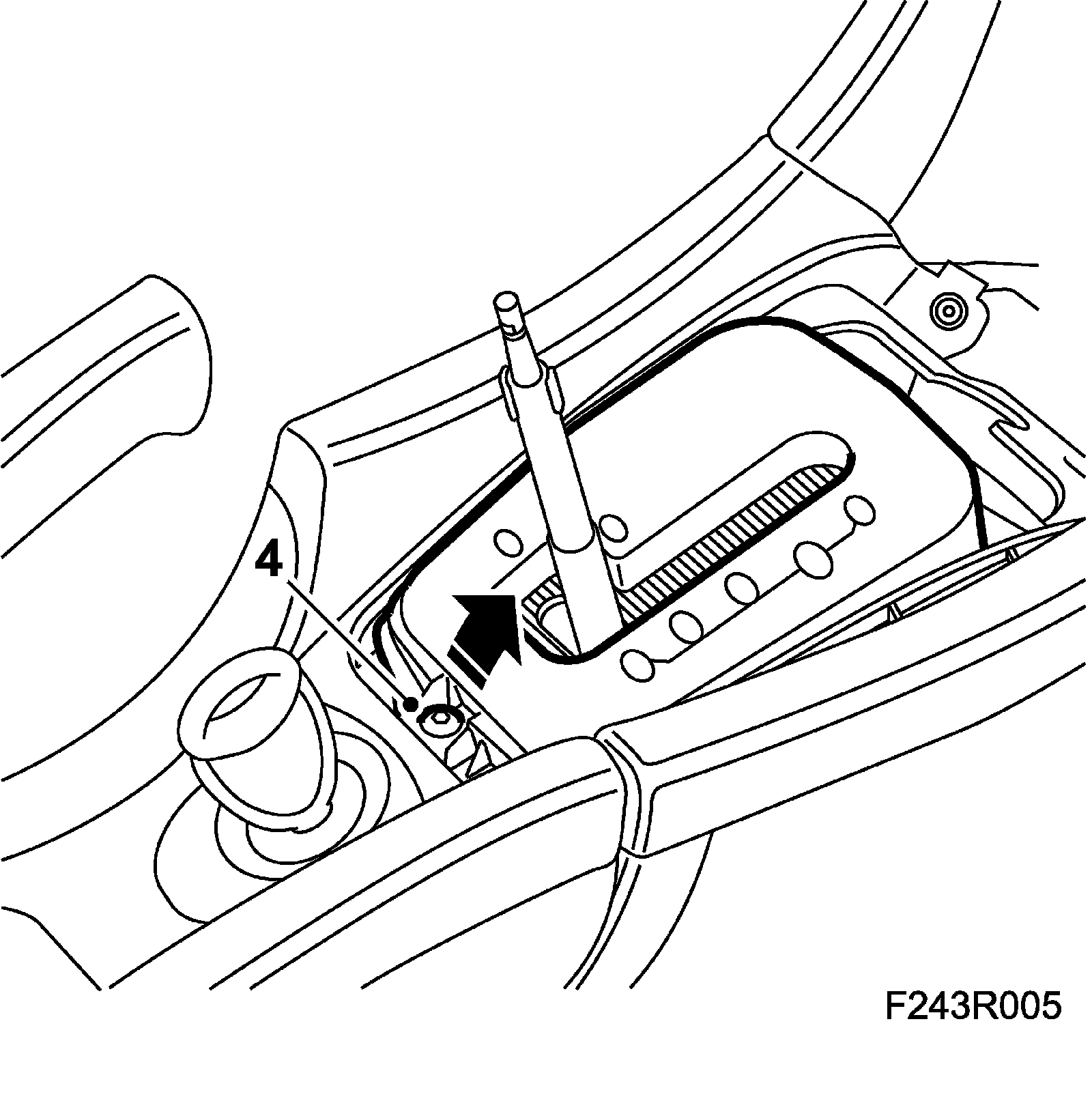 5. Lubricate the hole in the upper part of the pull rod plus the hose on the gear selector lever with a light coating of Vaseline.
