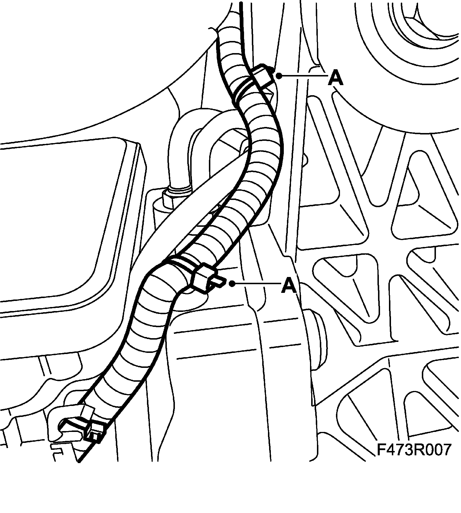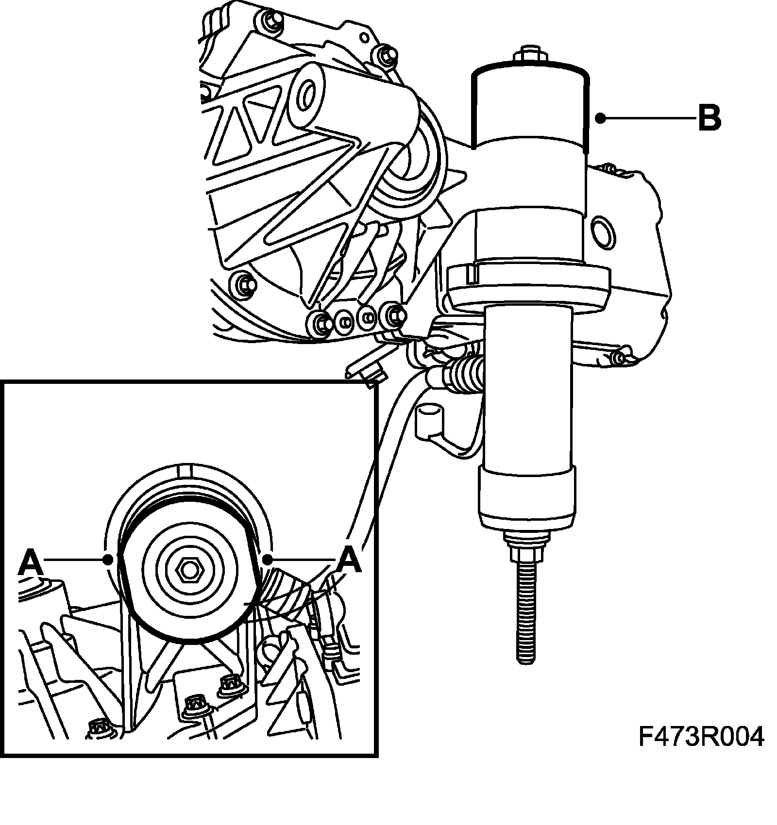 1. Fit the rubber bushing in the housing with the bevels (A) as illustrated and press the bushing into the housing with tool DT-49126-2 Press tool (B) and the hydraulic tool.