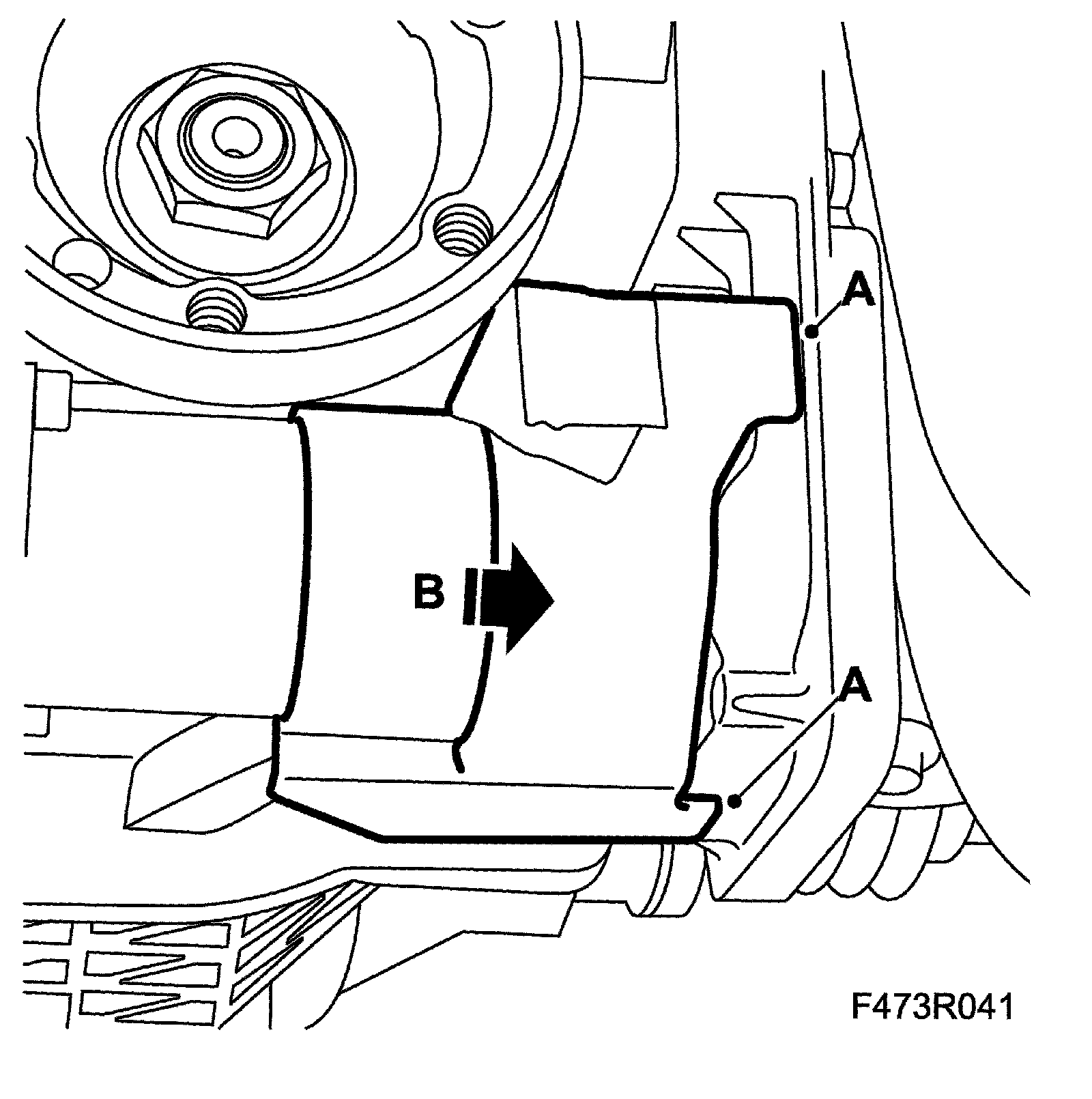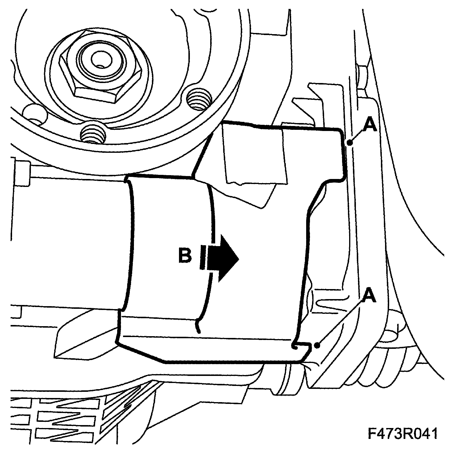 9. Fit the protective cover (B) to the hydraulic pump and hook the hooks (A) into the control module.