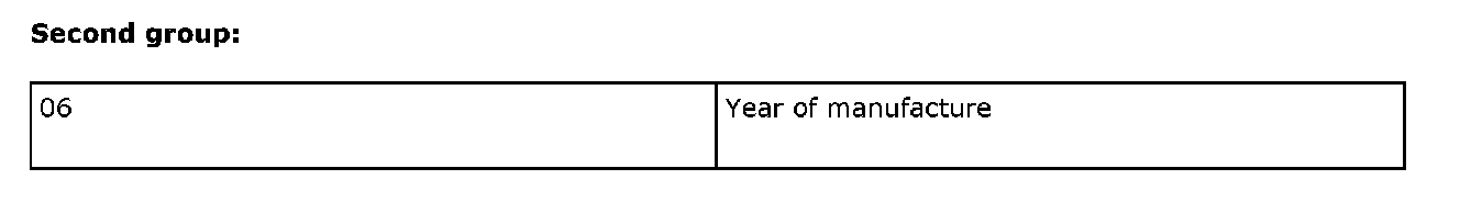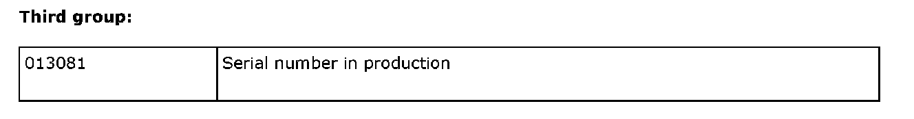 The three character groups are separated by spaces and contain different information about the gearbox as specified below.