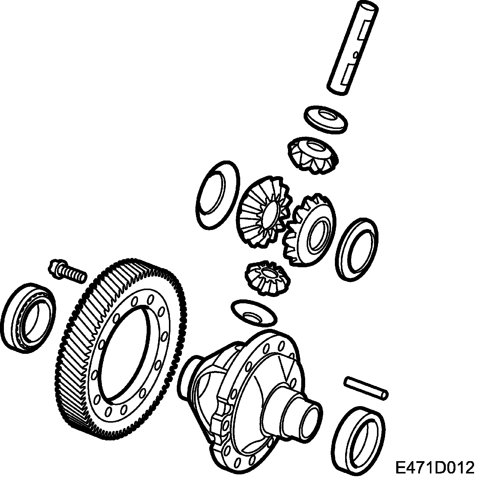 DifferentialThe differential allows the inside wheel to rotate faster than the inside wheel during cornering. The small differential pinions consequently rotate around the differential shaft while the larger differential pinions are rotating at different speeds and are stationary for driving straight ahead while the large differential pinions are rotating at the same speed. Power is conveyed from the final drive pinion to the final drive gear mounted inside the differential housing. From the differential housing, the power passes via the small differential pinions to the large ones, which are attached to the inner drive flanges and intermediate shaft with splines. From here, the power passes through the drive shafts to the wheels.