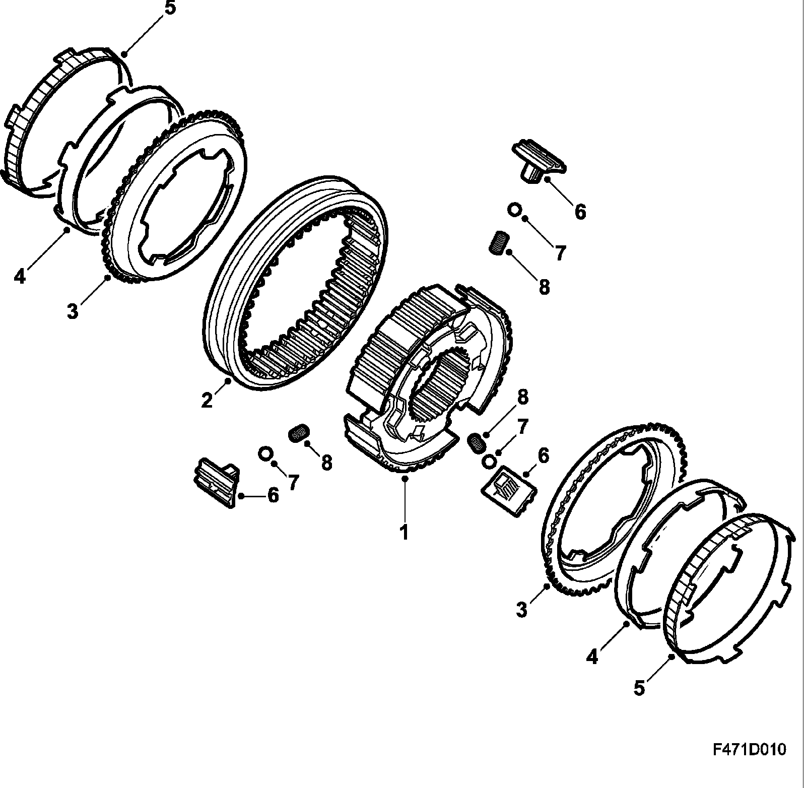If first or second gear is engaged, the sleeve pulls the catches slightly, which then start to bear against the outer baulk ring. This produces a presynchronization that is advantageous for the continued synchronization/shifting. In this position, the ball is pressed down against the sleeve. The ball does not reach a new recess in the sleeve, rather the forces required to keep the gear engaged primarily come from segments in the gear selector mechanism. This function can be found in all synchromesh hubs.
