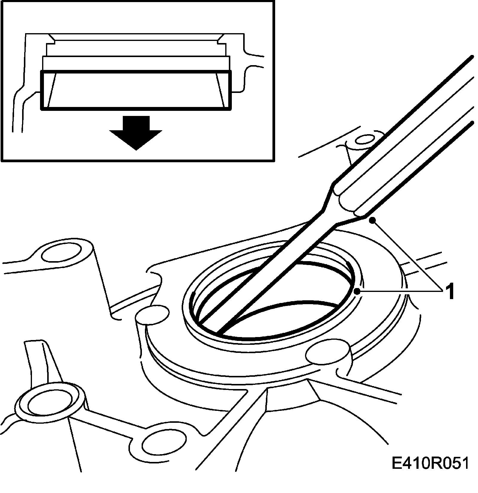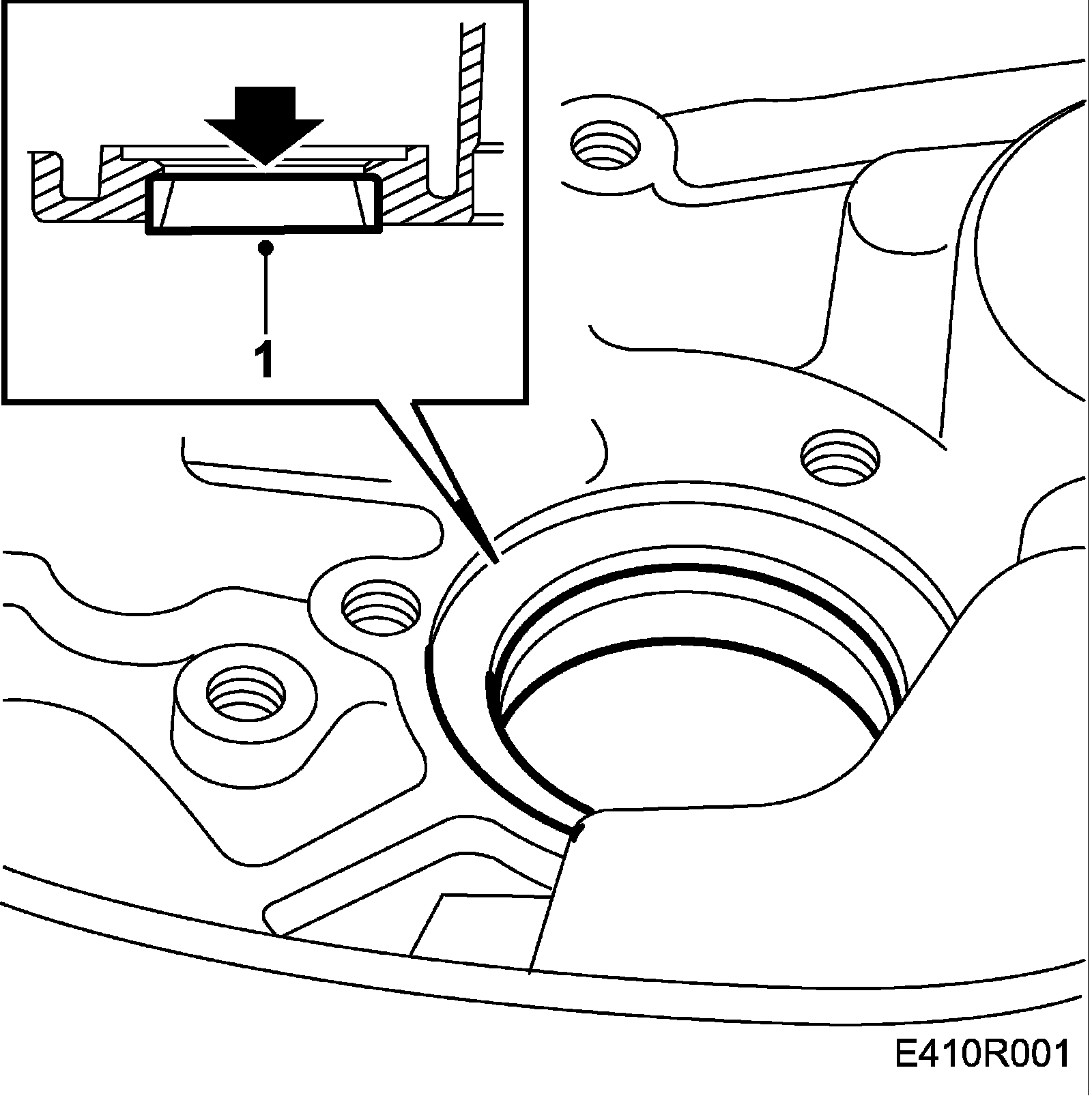 1. Carefully tap out the bearing race with a hammer and a drift (destructive removal)