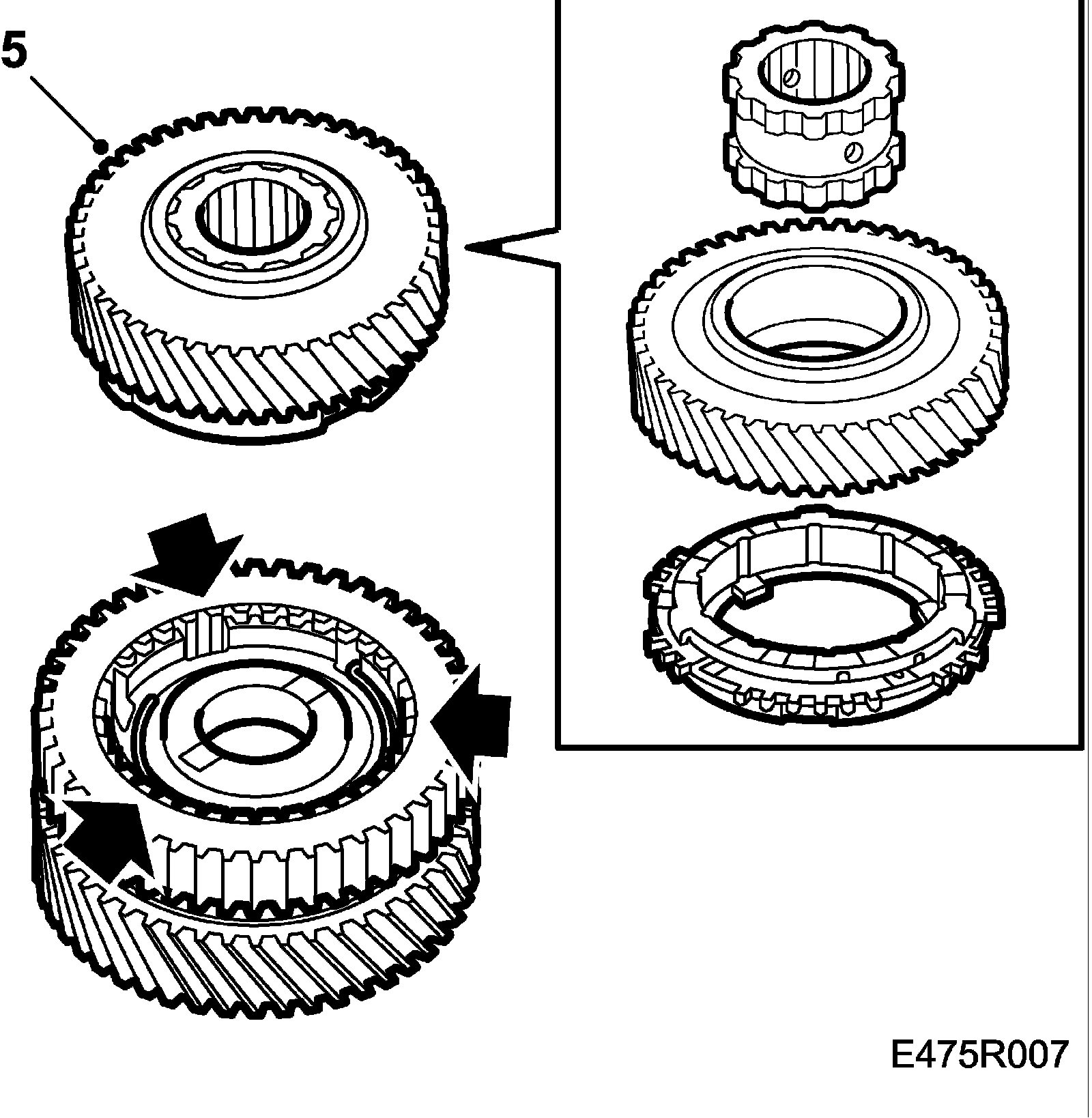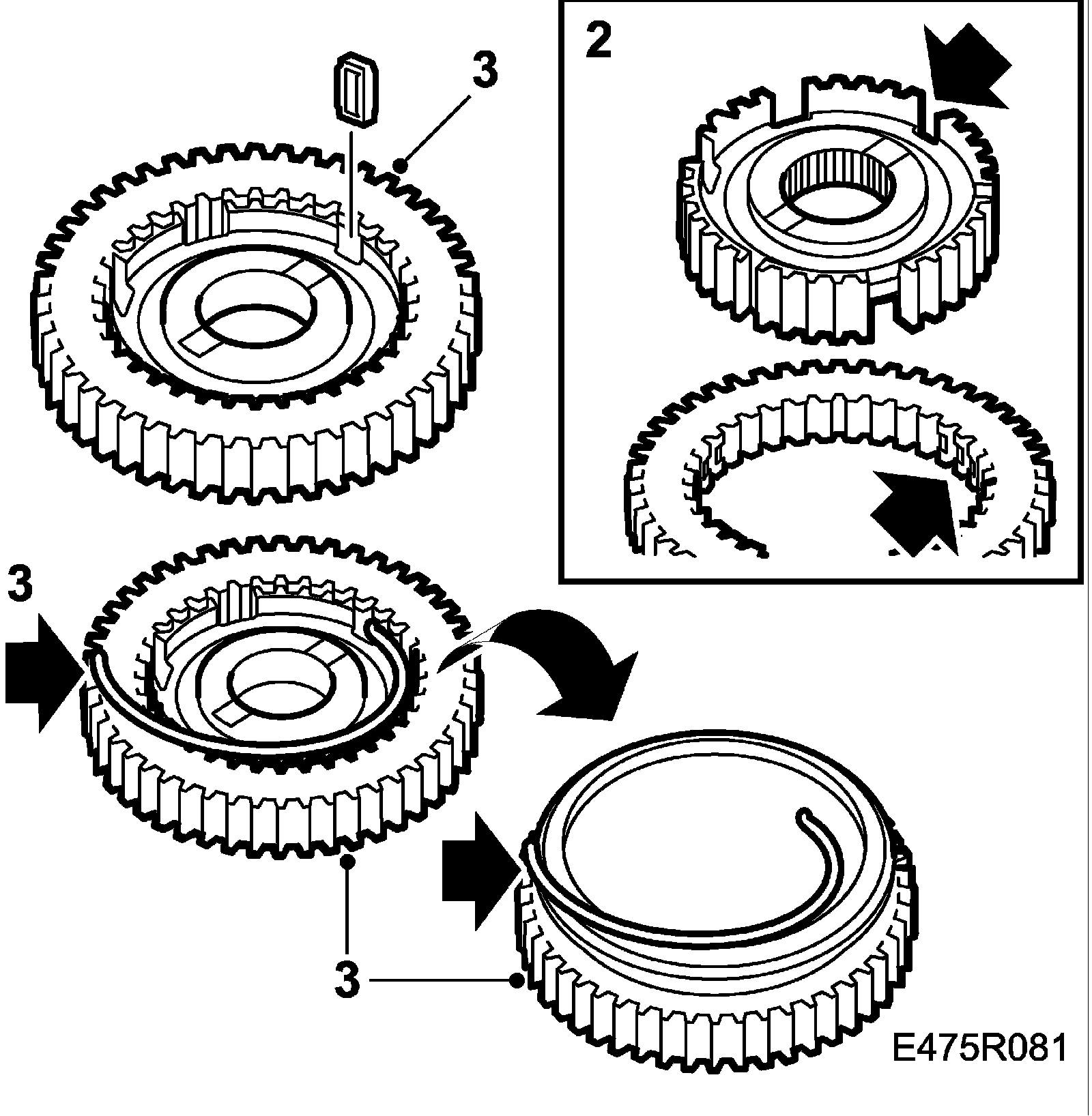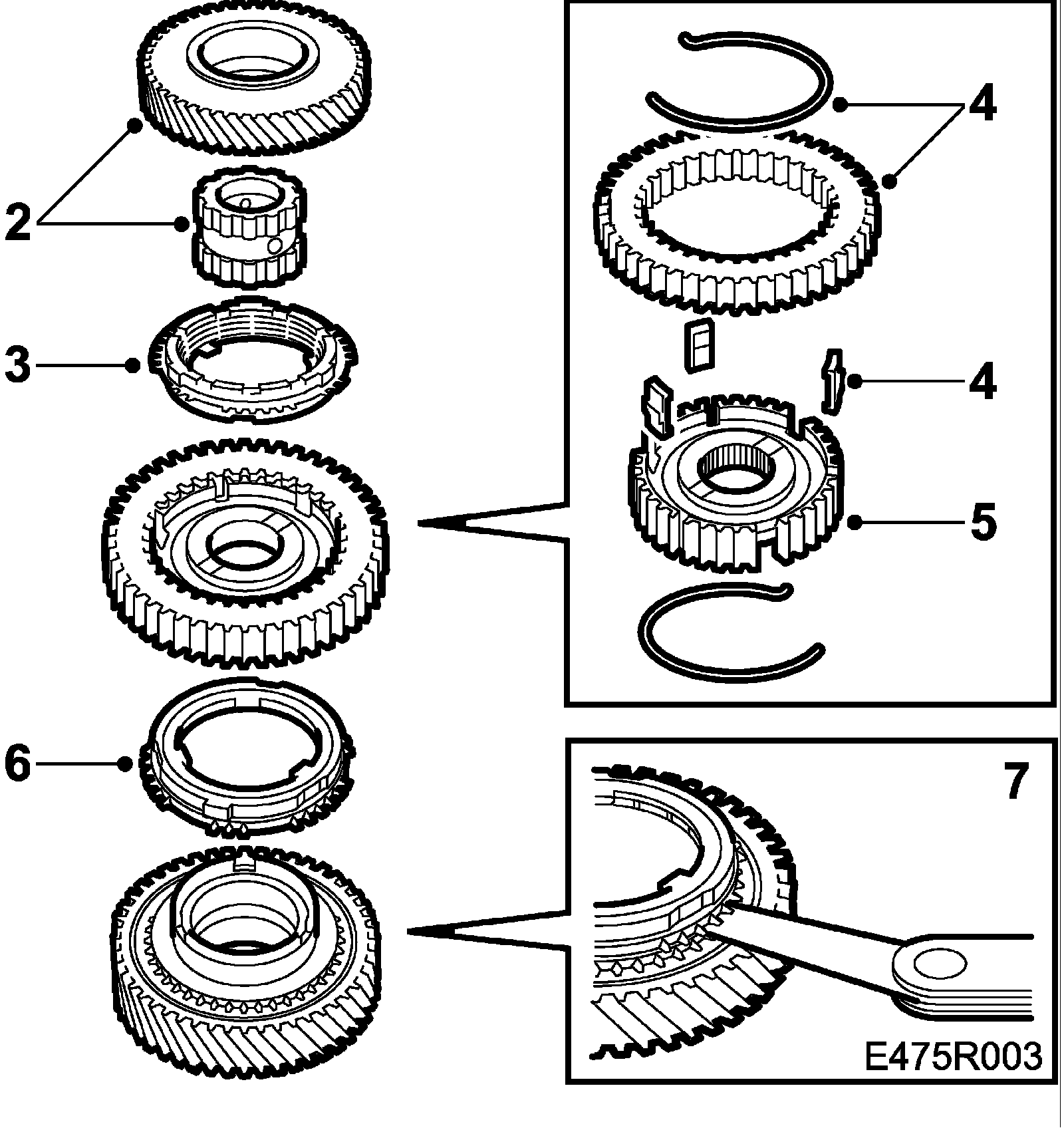 Important: Do not mix up the synchromeshes. The same parts must be refitted in the same place as before.