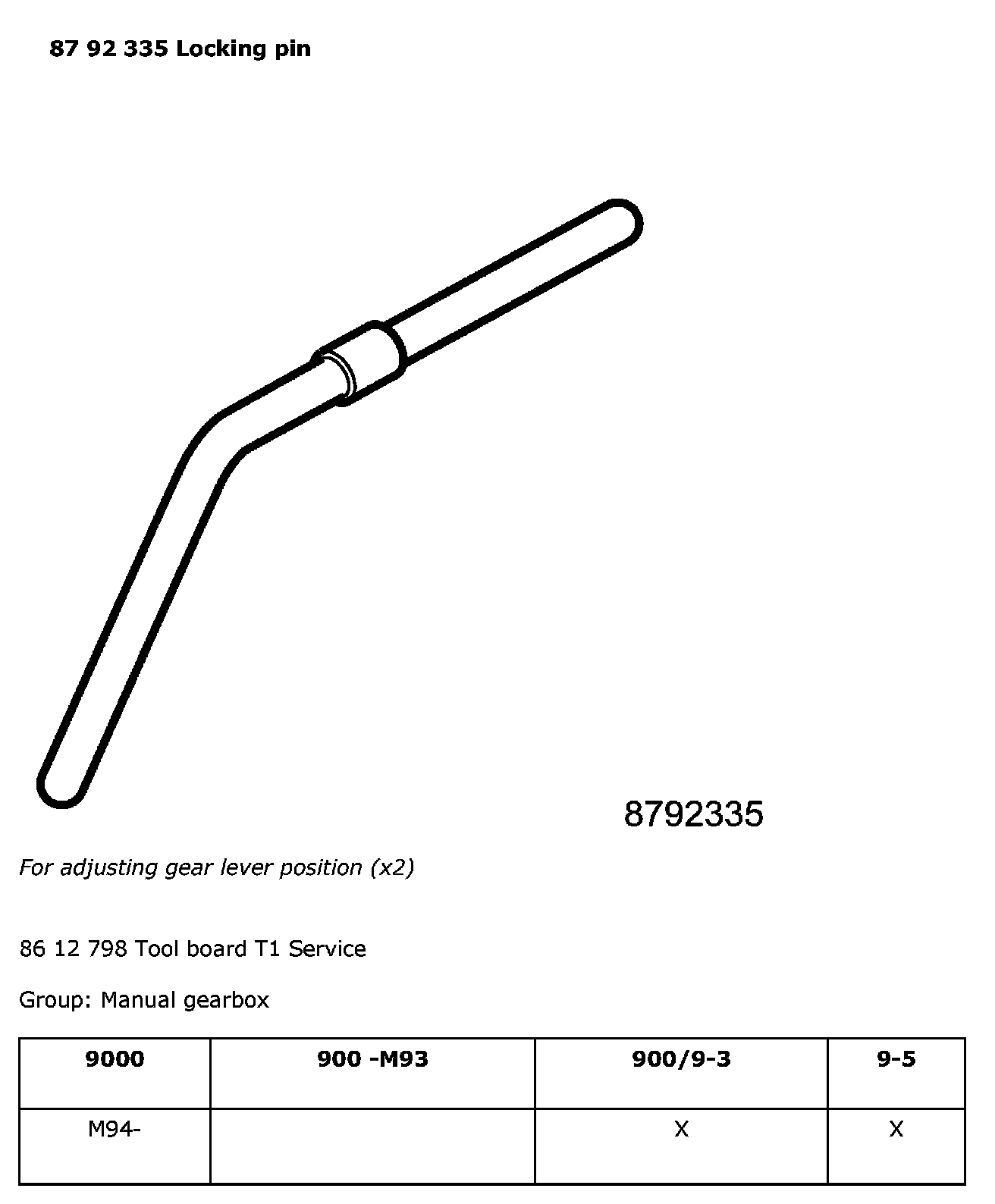 87 92 335 Locking Pin: