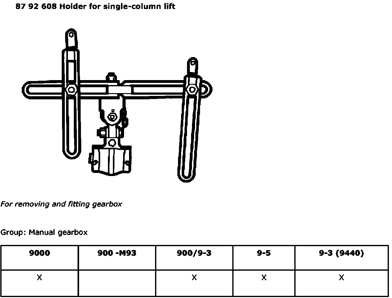 87 92 608 Holder For Single-Column Lift